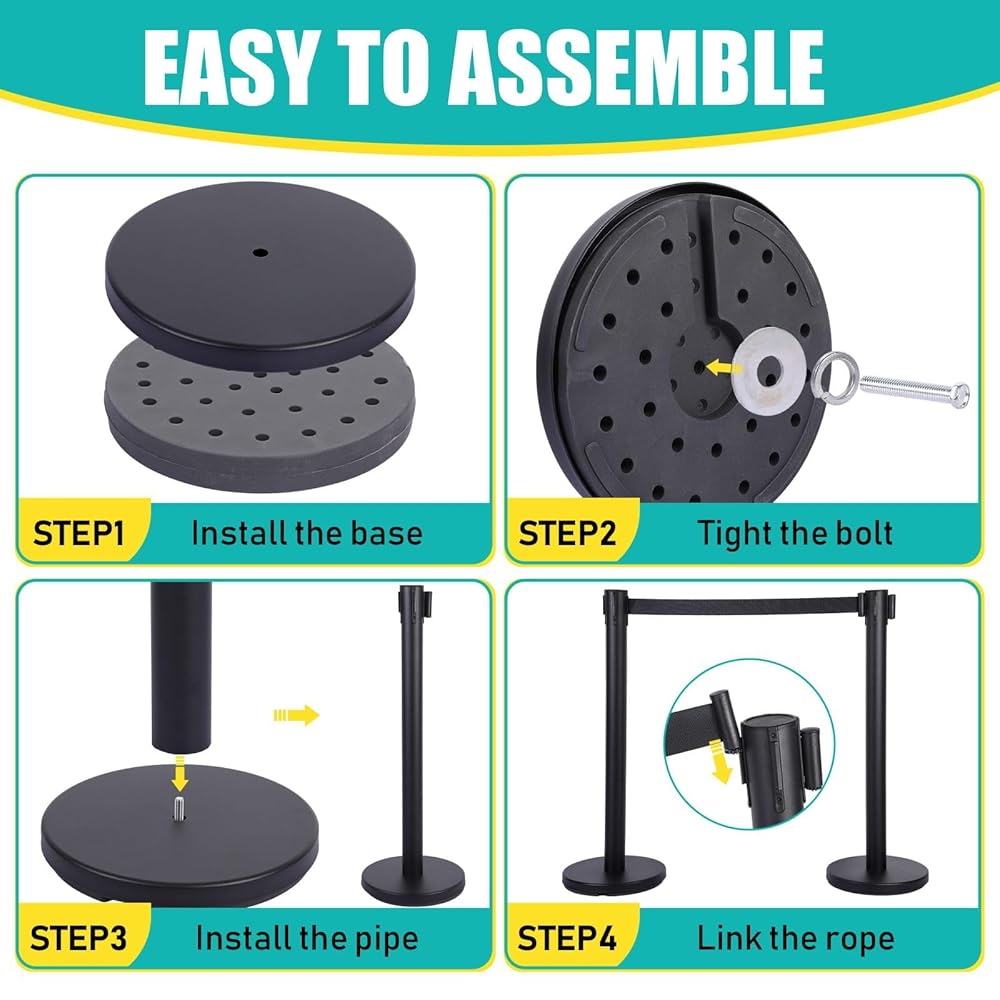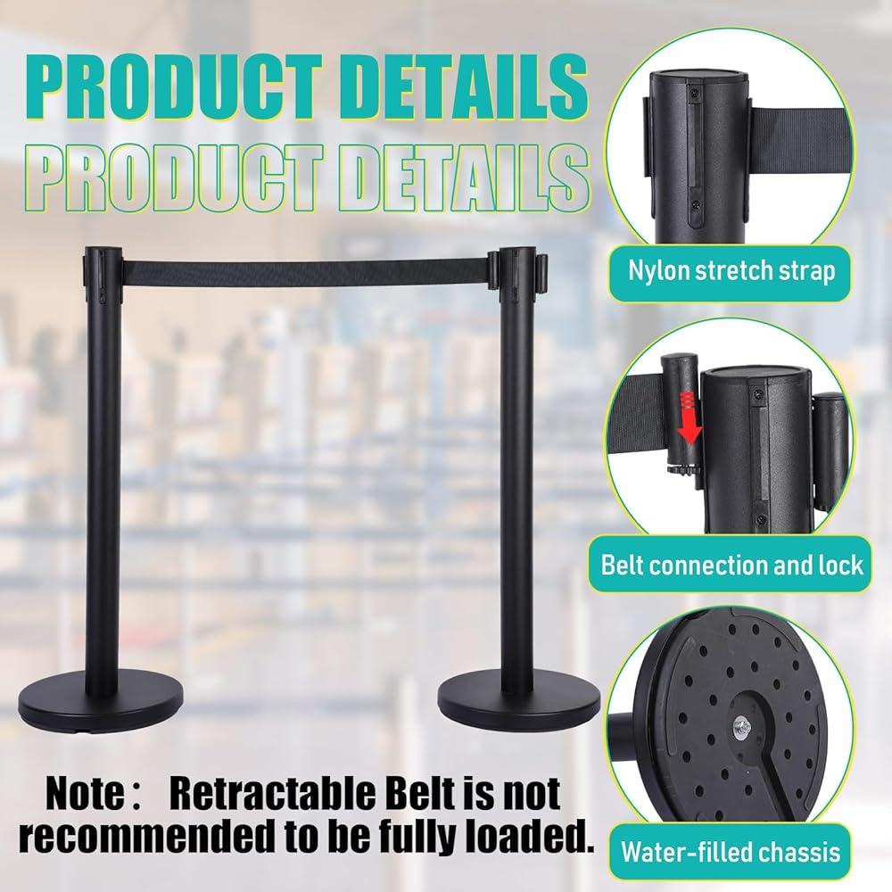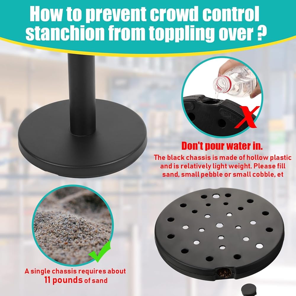 The combination of satinless steel, nylon belt, and a rubber base keeps the outdoor stanchion in place. Its rubber base prevents sliding or toppling, ensuring the stanchion stays put throughout events.