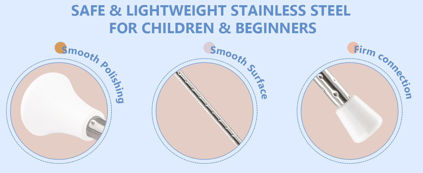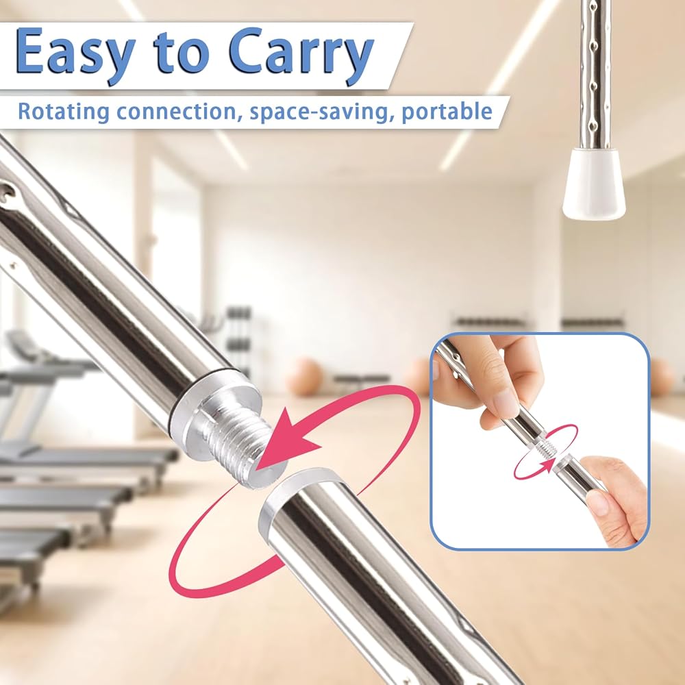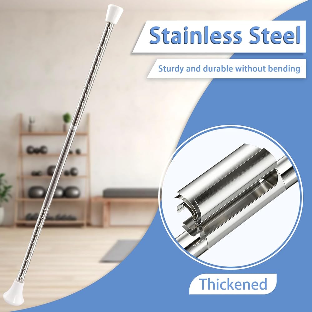 عصا العمود هذه مصنوعة من الفولاذ المقاوم للصدأ، وهو قوي وموثوق ولن ينكسر بسهولة. كلا الطرفين مصنوعان من البلاستيك عالي الجودة ومصقولان للحصول على لمسة نهائية ناعمة، مما يضمن عدم إصابة المستخدم عند استخدام عصا السير الدوارة هذه.