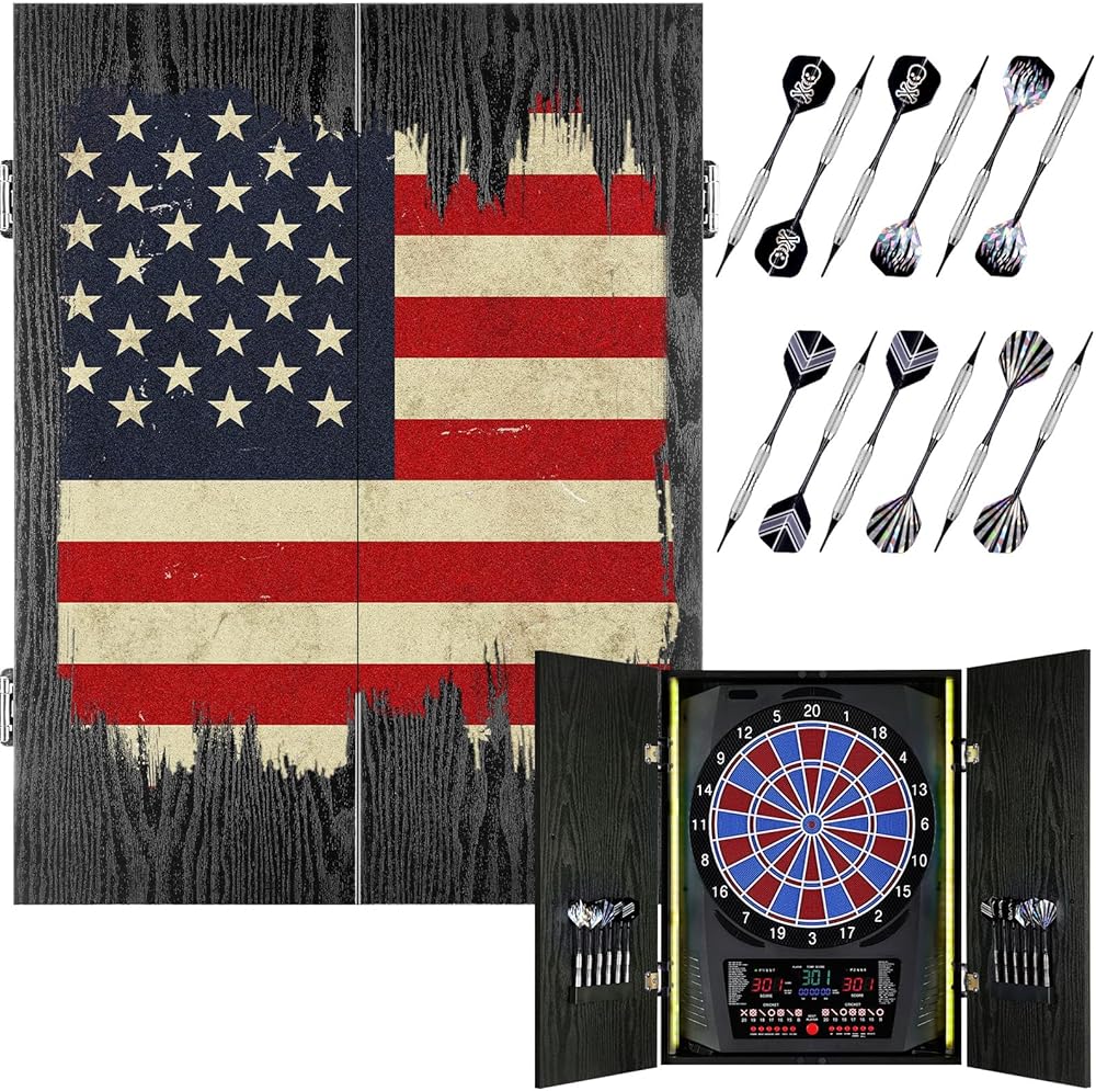 [تصميم صندوق خشبي فاخر] توجد لوحات رمي السهام الإلكترونية للبالغين في علبة خشبية صلبة متكاملة بدون ألواح أبواب، وهي متوفرة باللون الأسود الكلاسيكي والخشب العتيق، وتمزج بشكل مثالي بين الطراز الحديث البسيط والسحر الريفي الدافئ للمنزل والمكتب وغرفة الألعاب وتزيين البار.