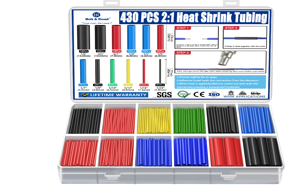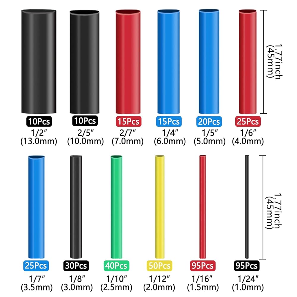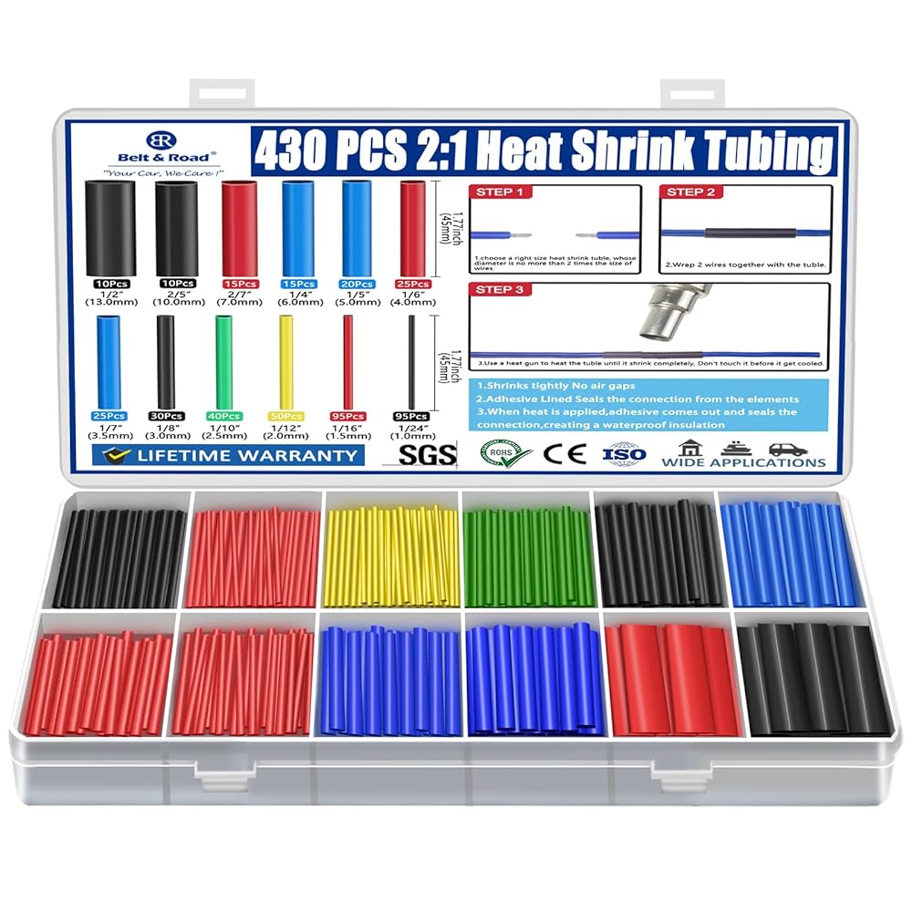للأعمال اليدوية/الإيجابيات: 430 قطعة من أنابيب التغليف المنكمشة مثالية للكهربائيين أو إصلاحات السيارات أو المشاريع المنزلية. يتم استخدام أنابيب الانكماش الحراري في الأسلاك البحرية والسيارات، وتوصيلات الأسلاك ومشاريع الأسلاك الكهربائية التي تصنعها بنفسك. لا مزيد من عمليات تشغيل المتجر في اللحظة الأخيرة!