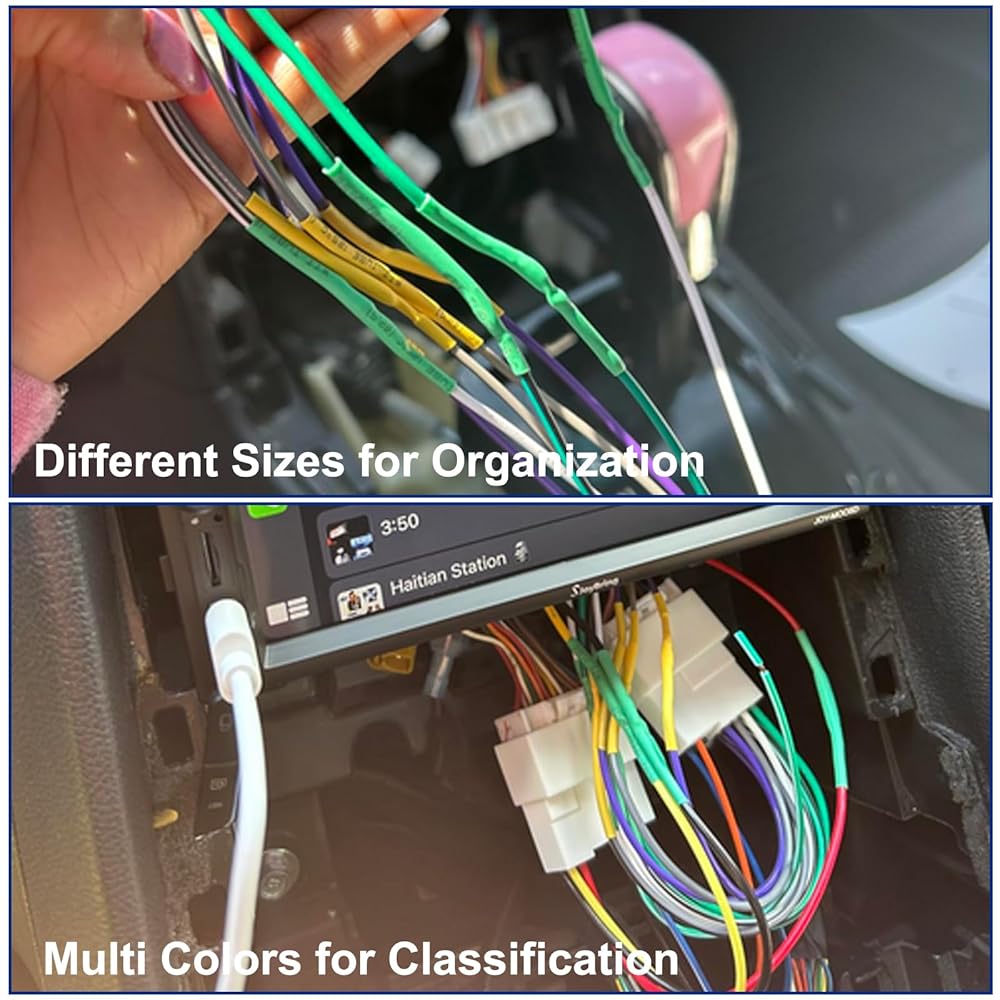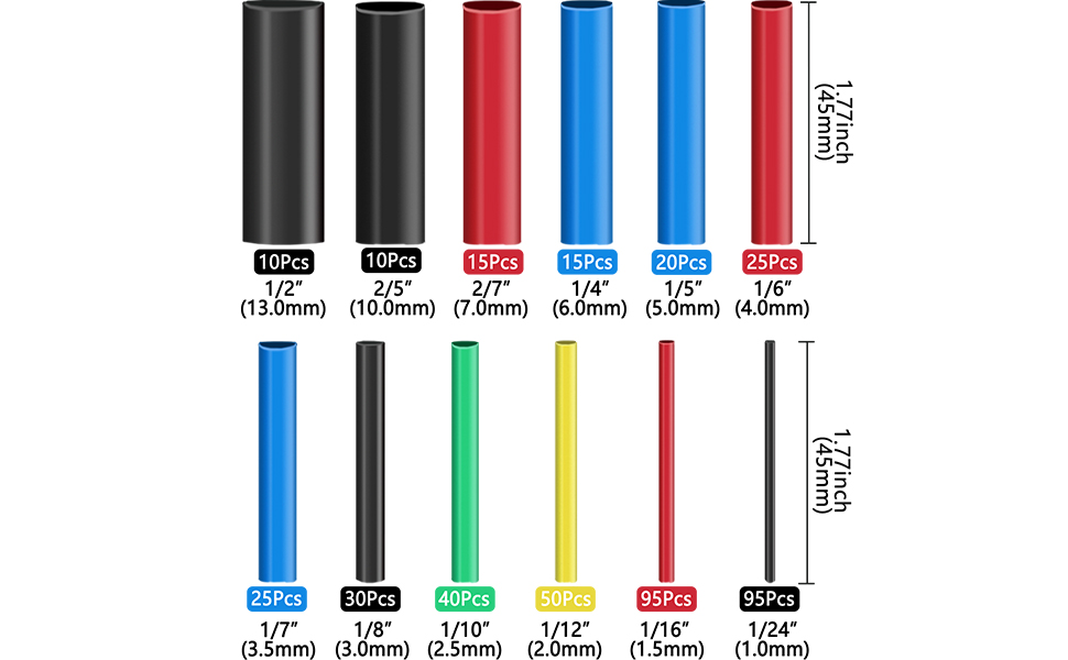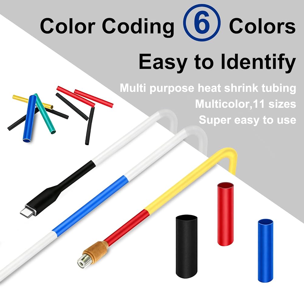 منظمة جيدًا - تأتي مع منظم بلاستيكي، حيث يتم وضع الأنابيب في 12 حجرة منفصلة، مما يوفر طريقة منظمة لمساعدتك في تحديد الأحجام المناسبة بسرعة وتصنيفها بسهولة.. 6 ألوان مخصصة لترميز الألوان للمساعدة في تحديد الكابلات مثل الأحمر للطاقة والأسود للأرض.