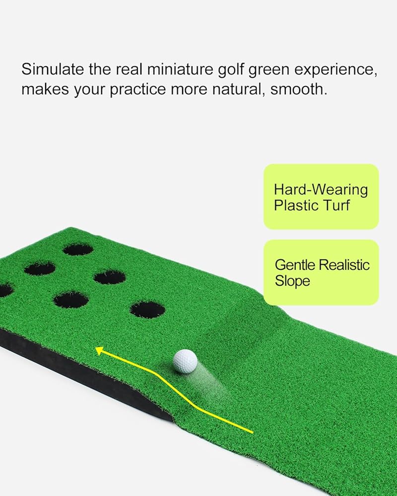 ⛳ 【شعور أخضر واقعي - الهدية المثالية لمحبي الجولف】عشب صناعي شديد التحمل يحاكي تجربة الجولف الخضراء المصغرة الحقيقية، مع منحدر واقعي لطيف وسرعة كرة ثابتة. هدية مثالية للاعبي الجولف من جميع المستويات للاستمتاع ببساطة بالتمرين الأصيل في المنزل. الهدية المثالية لعيد الأب، والكريسماس، وعيد الشكر!️