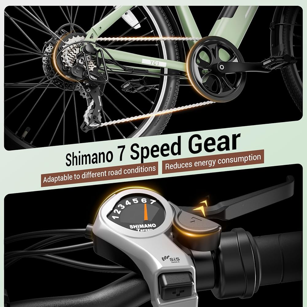 【محرك الذروة للدراجة الكهربائية بقدرة 1000 وات】يساعدك محرك محوري قوي بدون فرش بقدرة 1000 وات على التغلب على التلال والرحلات البحرية بسهولة. تتميز هذه الدراجة الإلكترونية أيضًا بناقل حركة Shimano ذو 7 سرعات، مما يسمح لك بتبديل التروس دون عناء، والتحكم بدقة في إيقاع الدواسة، وتحسين توصيل الطاقة لأي تضاريس.