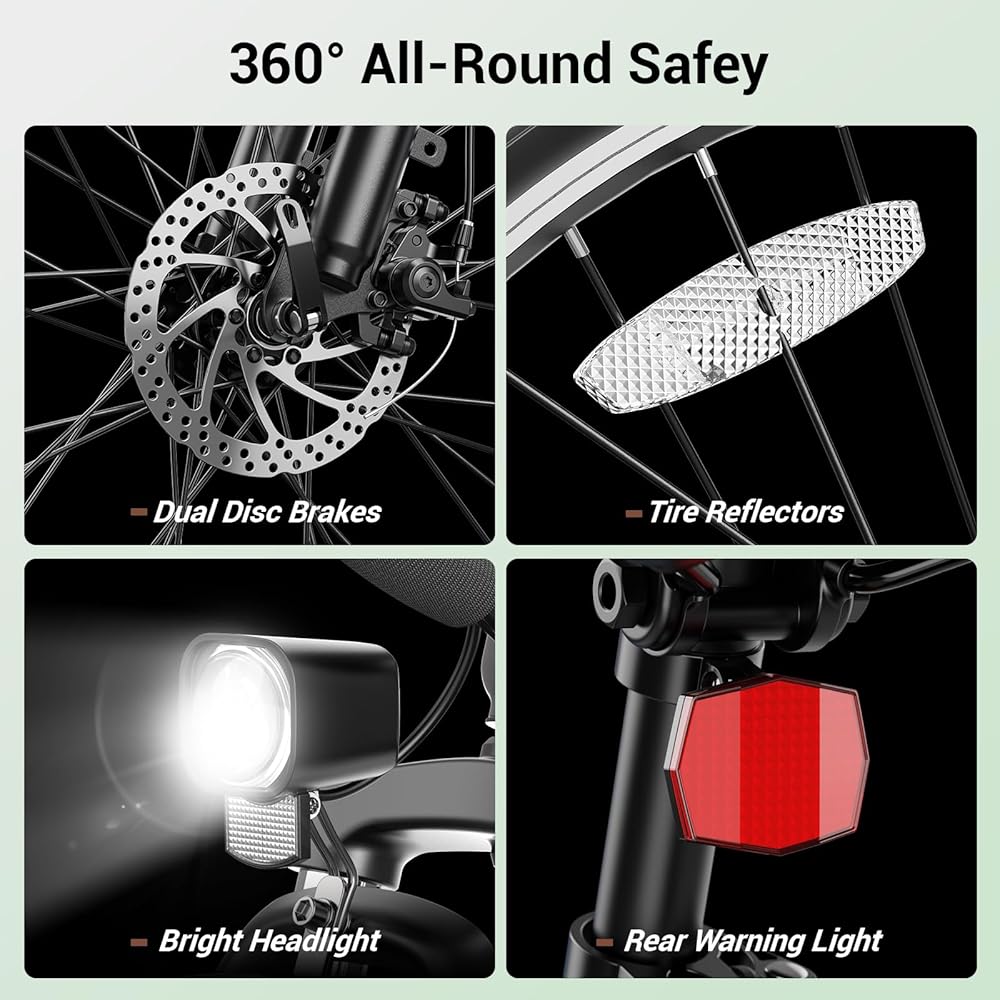 【دراجات إلكترونية مع تشغيل بسيط】تصل هذه الدراجة الكهربائية للبالغين إلى سرعة قصوى تبلغ 25 ميلاً في الساعة وتتميز بشاشة ذكية واضحة، مما يسمح بالتحكم والمعلومات البديهية في جميع الأوقات. يمكنك عرض المؤشرات الرئيسية على الفور مثل السرعة الحالية وشحن البطارية ومستوى PAS.