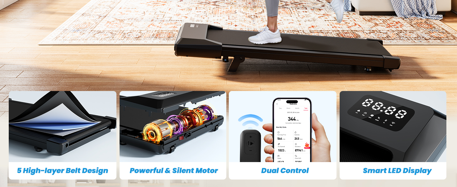 وسادة مشي هادئة أسفل المكتب - استمتع بمستوى صوت "المطر الخفيف" أثناء المشي. يُعد جهاز المشي الصغير هذا الخيار الأفضل للشقق والمساحات المشتركة، مما يضمن تمرينًا صامتًا لن يوقظ الأطفال أو يشتت انتباه المكتب