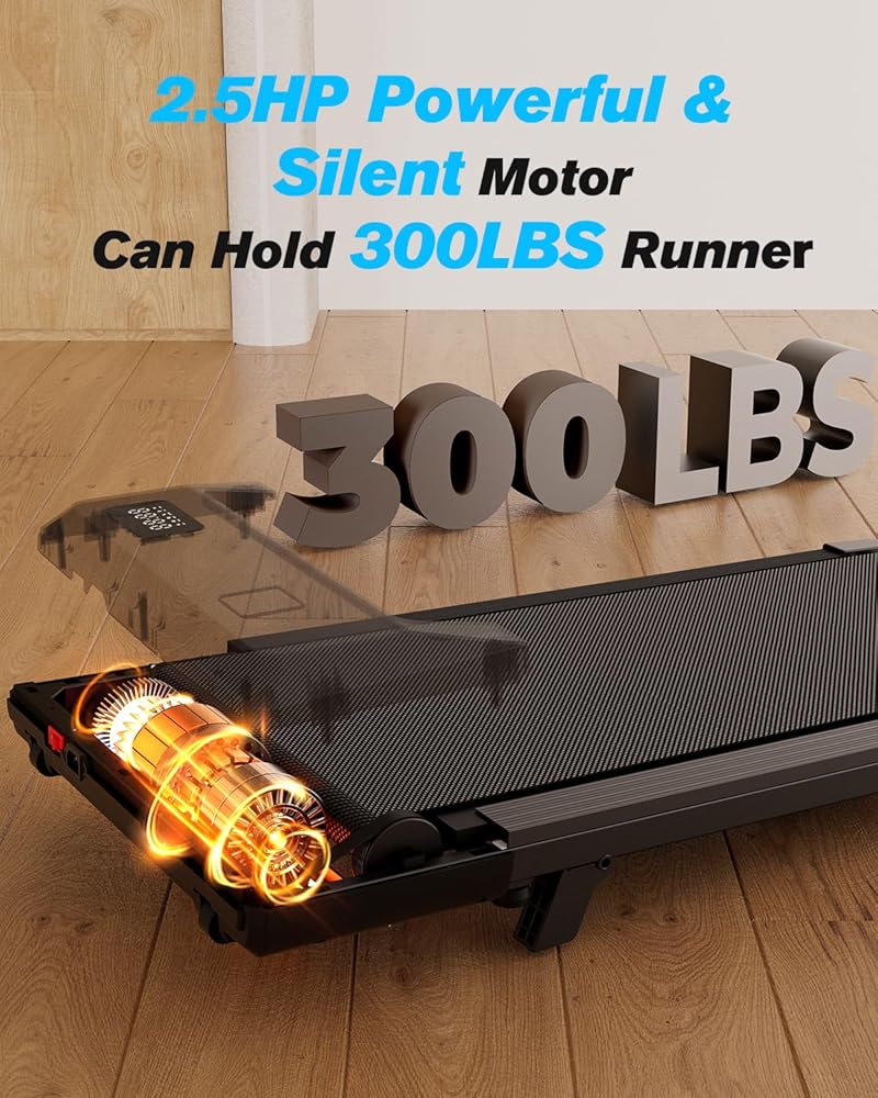محرك قوي 2.5 حصان وسعة 300 رطل - تم تصميم جهاز المشي هذا بمحرك قوي 2.5 حصان، ليدوم طويلاً ويدعم بسهولة ما يصل إلى 300 رطل. يوفر الإطار عالي التحمل تمرينًا ثابتًا وآمنًا للمستخدمين من جميع الأحجام، مما يضمن أقصى قدر من المتانة للاستخدام اليومي