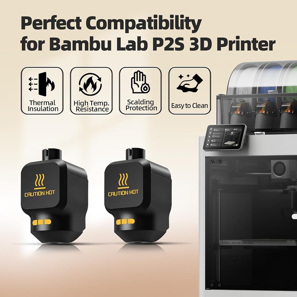 【300℃ High Temperature Resistance】The P2S nozzle cover is made from heat-resistant, non-stick material. It will not melt or release odors at hotend temperatures, ensuring a safe and stable printing environment.