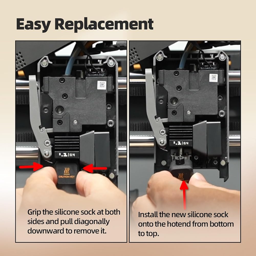 【Easy to Clean, Low Cost】If molten filament splashes, the P2S sock is far easier to clean than a textured heating block or you can directly replace the silicone cover.