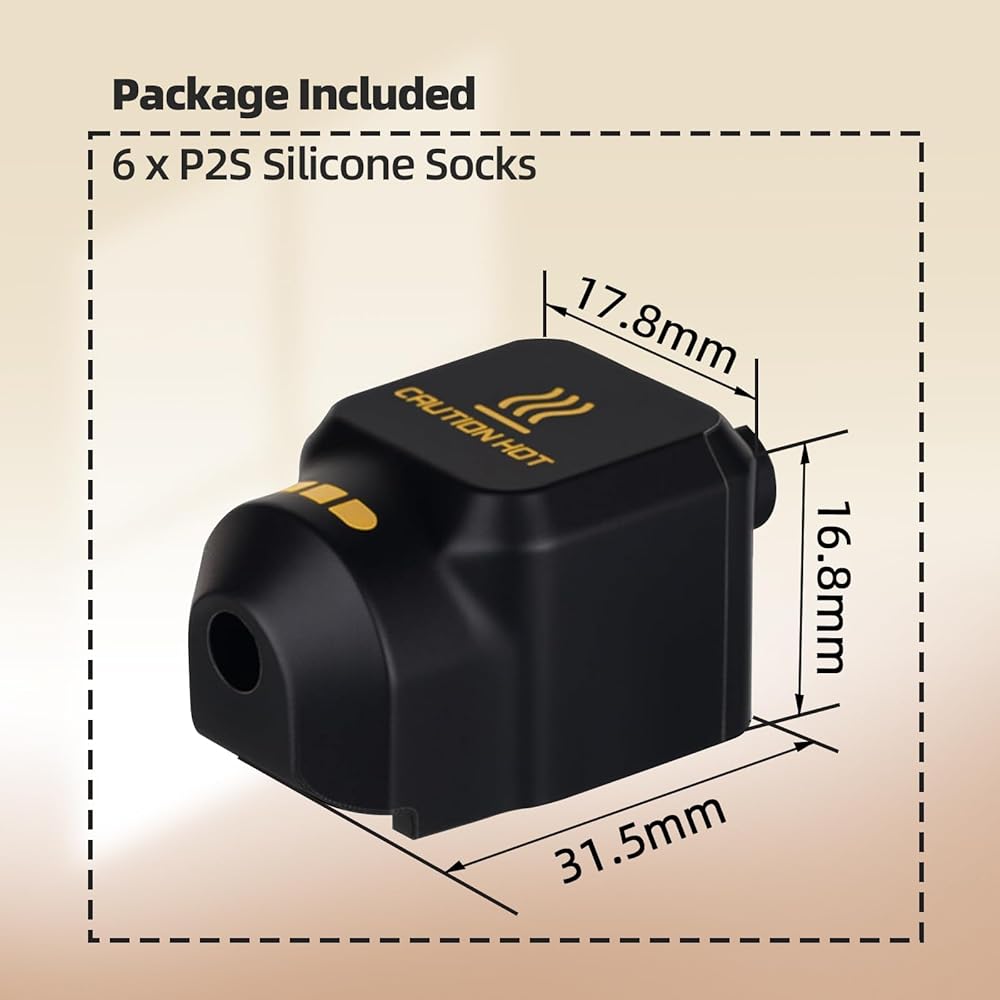【Package Included】6 x P2S silicone socks, compatible for Bambu Lab P2S Combo 3D printer print head hotend. The P2S silicone covers features an embedded identification code for instant hotend recognition, preventing compatibility errors and system alerts for smooth, trouble-free printing.