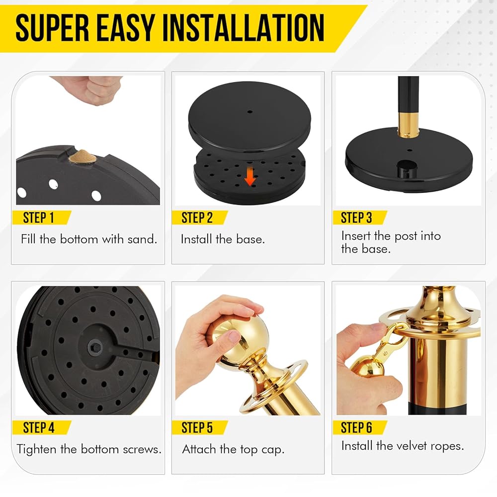 • Comprehensive package includes multiple gold & black posts, sturdy bases, and 5 ft black soft fabric ropes, perfect for theaters, hotels, exhibitions, and VIP sections.