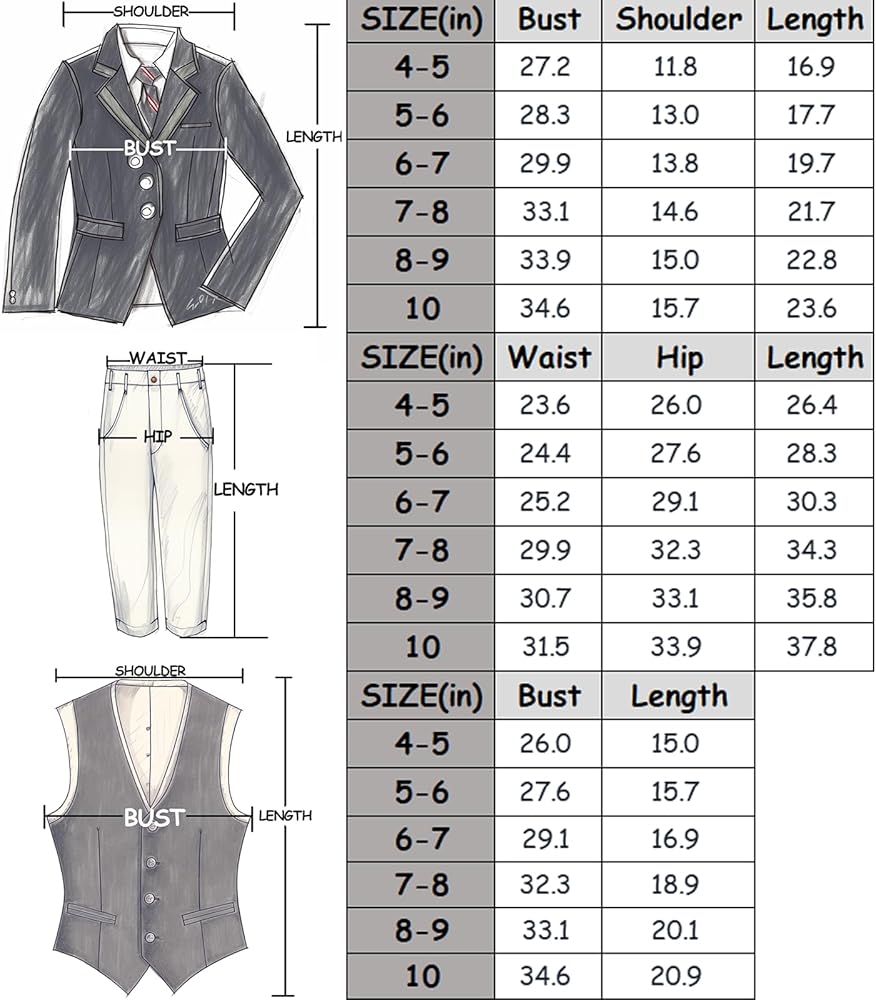 Style Type:Boys 3 Piece Suit, Kikland 2 Button Jacket Blazer Waistcoat Slim Fit Tuxedo for boys, Dress Suit for Wedding Birthday Dinner Prom