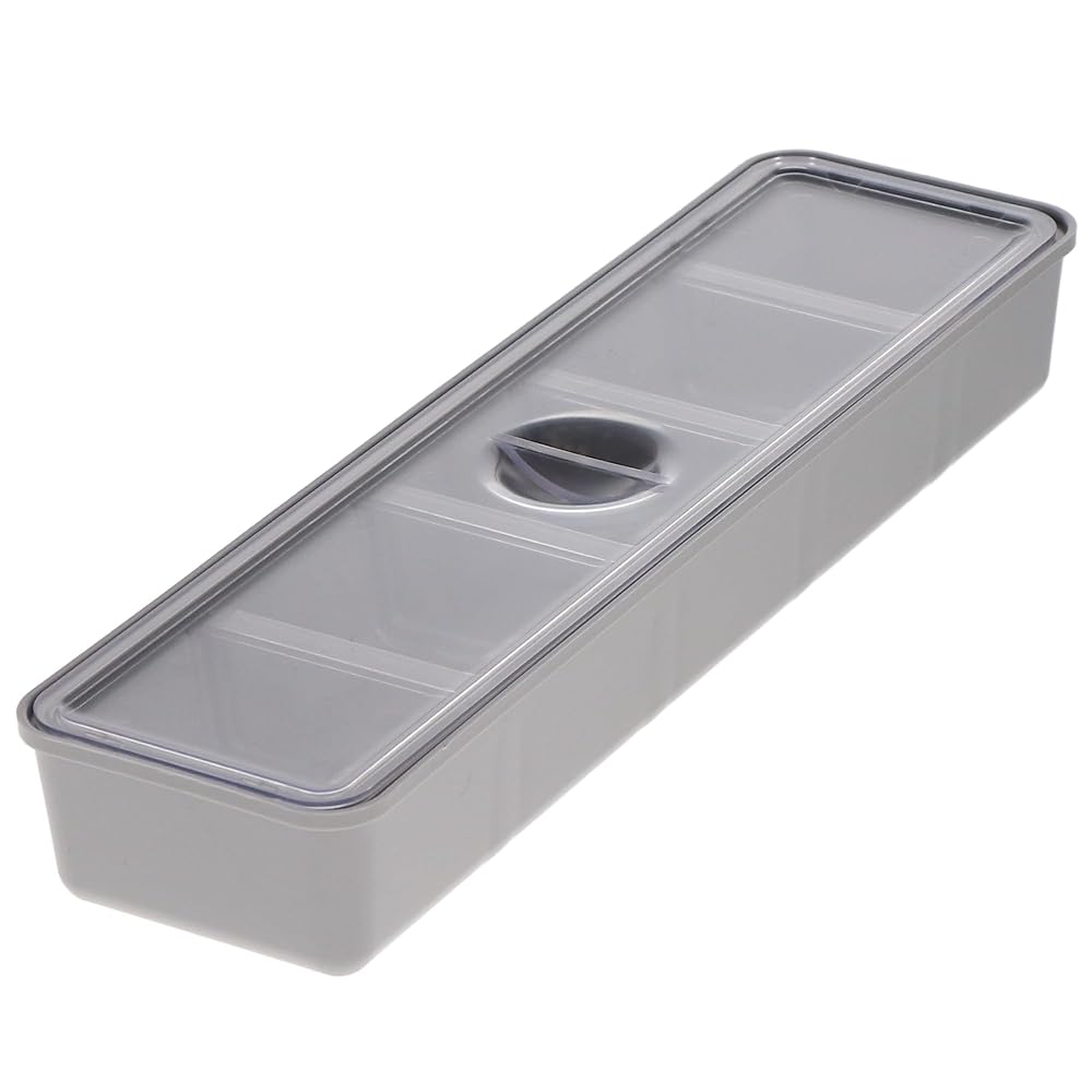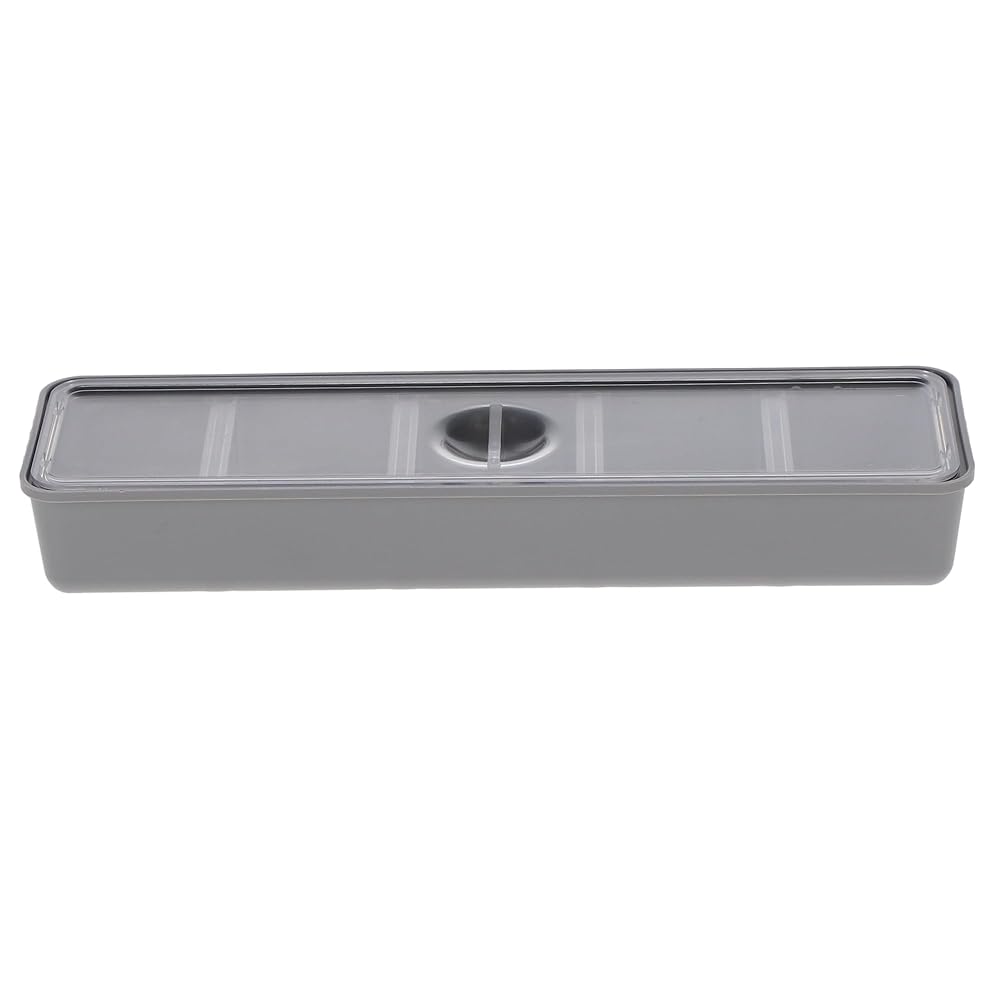 Long Tub Cup With Cover, 8 3/8" x 2 5/16" x 1 1/8", provides 5 storage compartments, Gray Color, cold sterilize only, Single tub cup with cover. Organizes a variety of materials such as brushes and clamps. Stores easily misplaced items. Designed with 5 compartments for systematic storage. Tub Cups with Covers is the ultimate dental accessories organizer. It has 5 compartments to store brushes, clamps, syringe tips, implant apparatus, pumice, and other easily lost items.Covers are clear and transparent. Tub Cups come in gray color and in 3 different #s: Single 2 1/4" x 1 5/8" x 1 1/8"; Double 3 3/8" x 2 1/4" x 1 1/8"; Long 8 3/8" x 2 5/16" x 1 1/8". 1/Pk.
