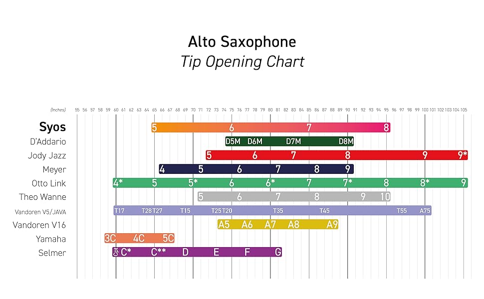 متوافقة مع الملحقات من العلامات التجارية الأخرى: تعمل قطعة الفم Syos مع أي رباط لقطعة الفم ألتو ساكس المطاطية وسوف تتناسب مع فلين أي ساكسفون ألتو. كما أنها صديقة جدًا للقصب.