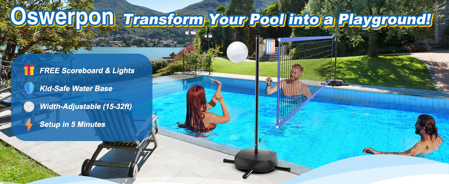 Classic Pool Volleyball Net with Scoreboard : Adjustable Width (15-32 FT) Upgraded Pool Volleyball Net with Scoreboard : Adjustable Width (15-32 FT) & Height ( 4 - 7.5 ft )