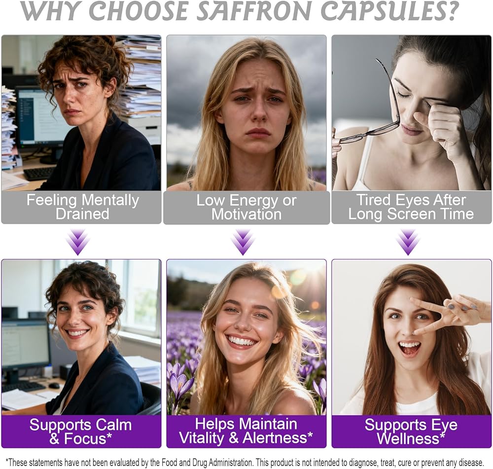 Holistic Energy & Inner Harmony: Each capsule blends science with tradition—azafran's time-honored benefits for calm, vitality, and clarity. Enjoy a smooth, steady lift in energy and mood, with nature's purest spice as your daily ally.
