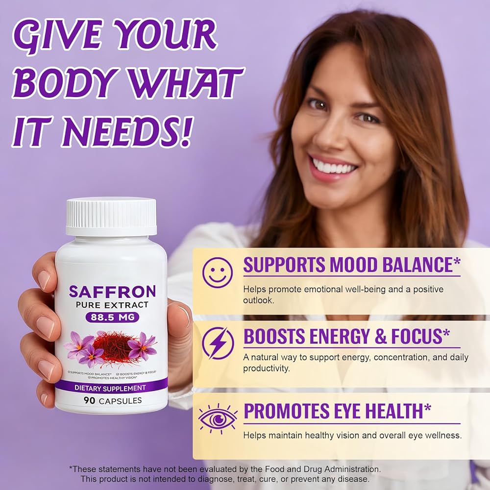 Brighten Mood & Boost Energy Naturally: Our saffron supplement promotes daily calm, focus, and energy. Known as azafran, this “sunshine spice” supports emotional balance and motivation—helping you feel uplifted and ready to take on the day.