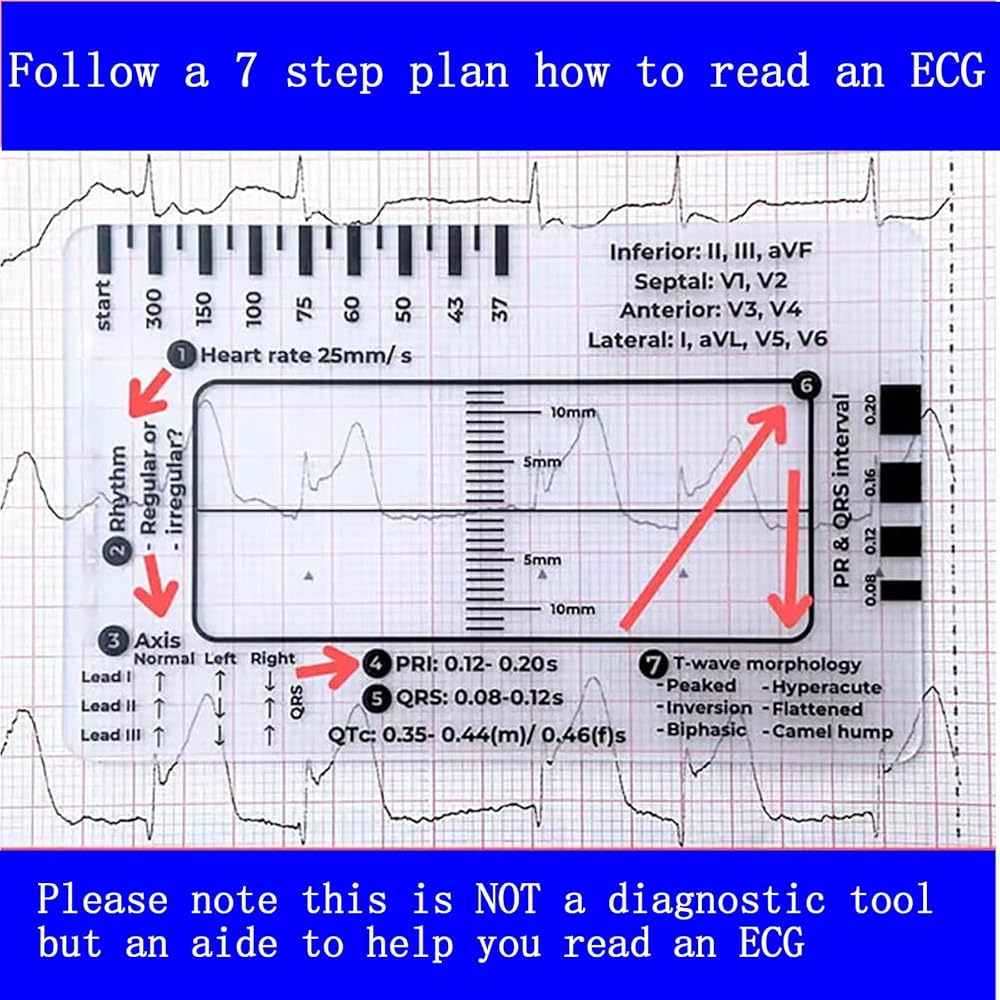 مثالية للتعلم والتمرين: أداة يجب اقتناؤها لتعليم وممارسة رسم تخطيط القلب، وهي مناسبة ليس فقط للأطباء المحترفين ولكن أيضًا لأي شخص يرغب في إتقان تفسير تخطيط القلب. تُعد مسطرة الخطوات السبعة رفيقًا موثوقًا به في كل مكان، بدءًا من الفصول الدراسية ووصولاً إلى الإعدادات السريرية