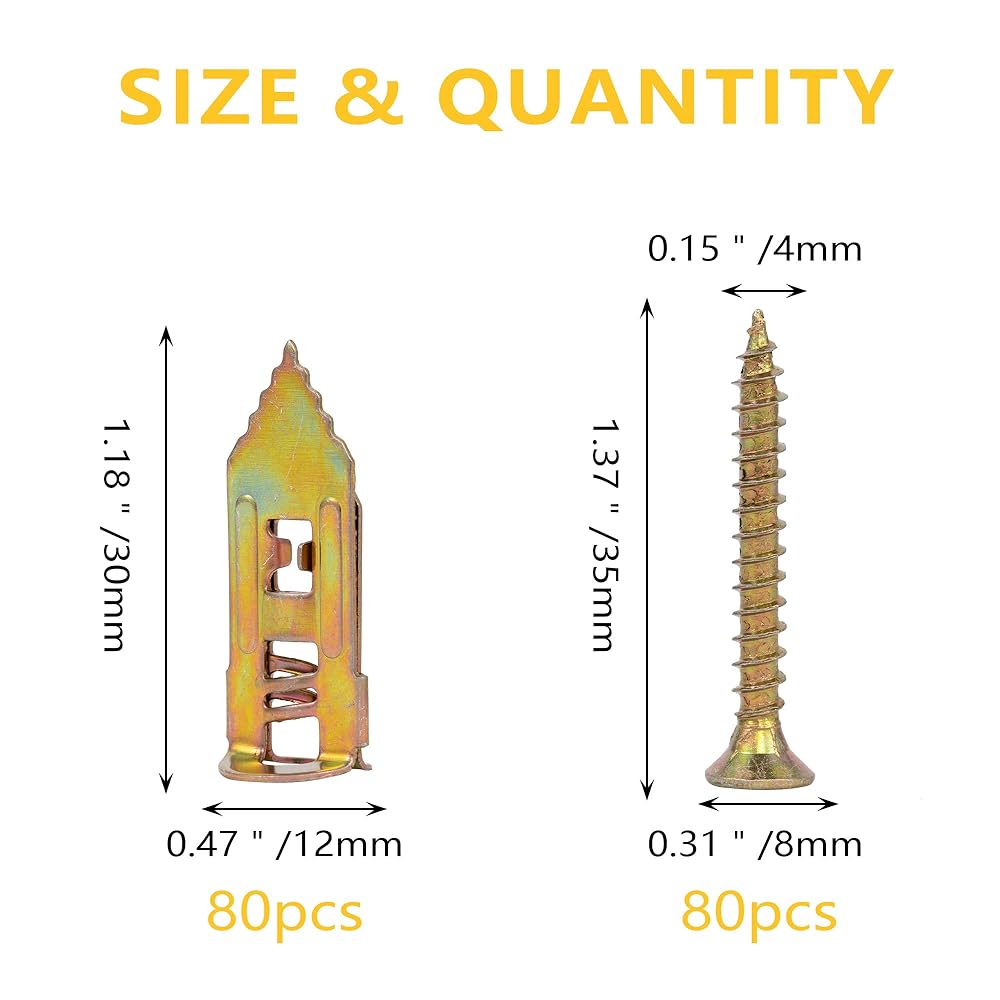 Convenient 160-Piece Kit – Includes 80 anchors + 80 screws in multiple sizes for versatile use.
