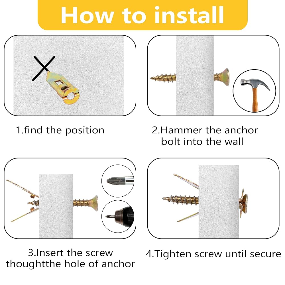 Heavy-Duty Support – Steel anchors and zinc screws offer superior holding power (up to 50 lbs per anchor) for secure mounting.