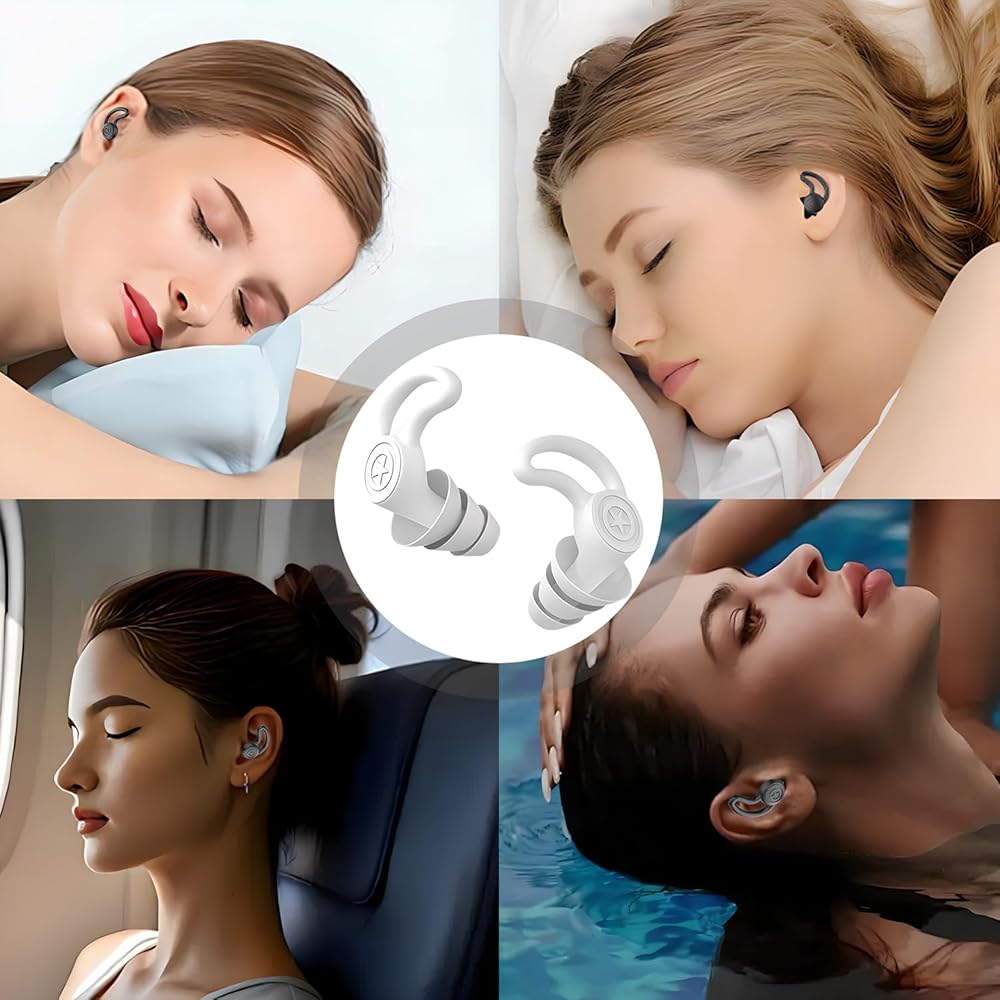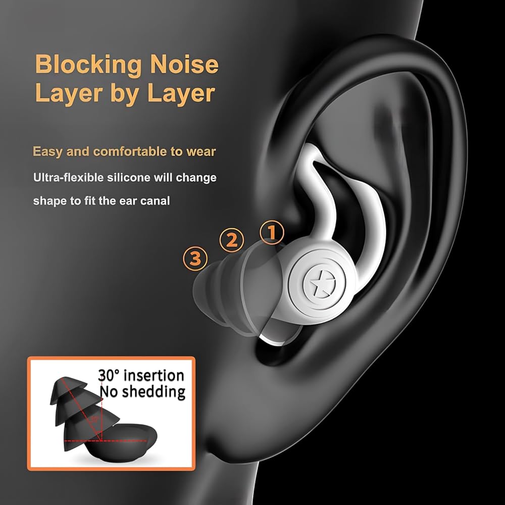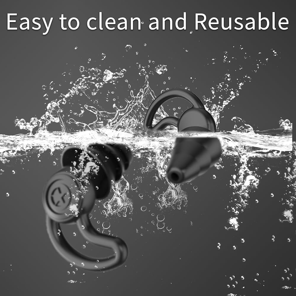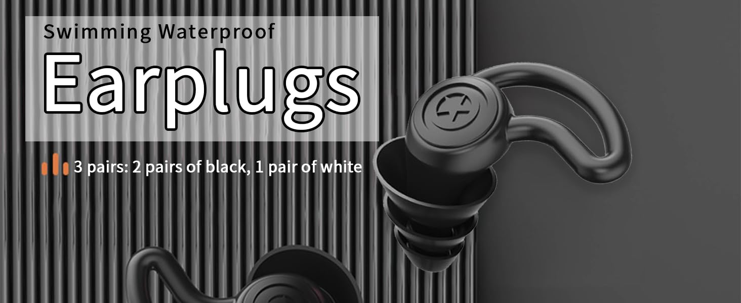 سدادات أذن للسباحة، 3 أزواج سدادات أذن للسباحة من السيليكون مقاومة للماء وقابلة لإعادة الاستخدام مع صندوق تخزين للسباحة وركوب الأمواج وحمام السباحة، الشاطئ (زوجان من الأسود، زوج واحد من الأبيض)