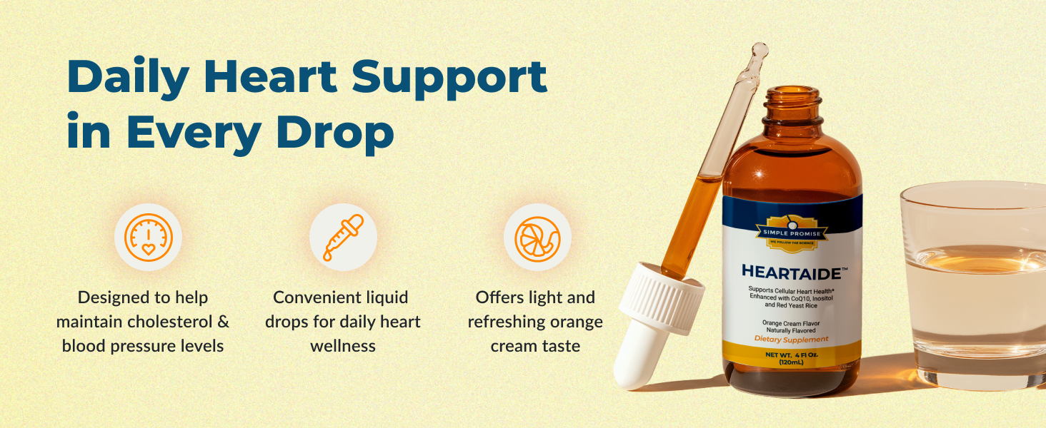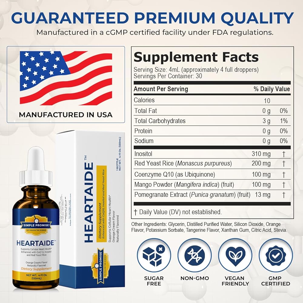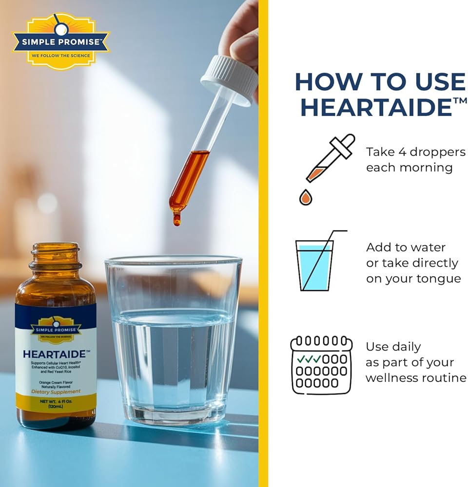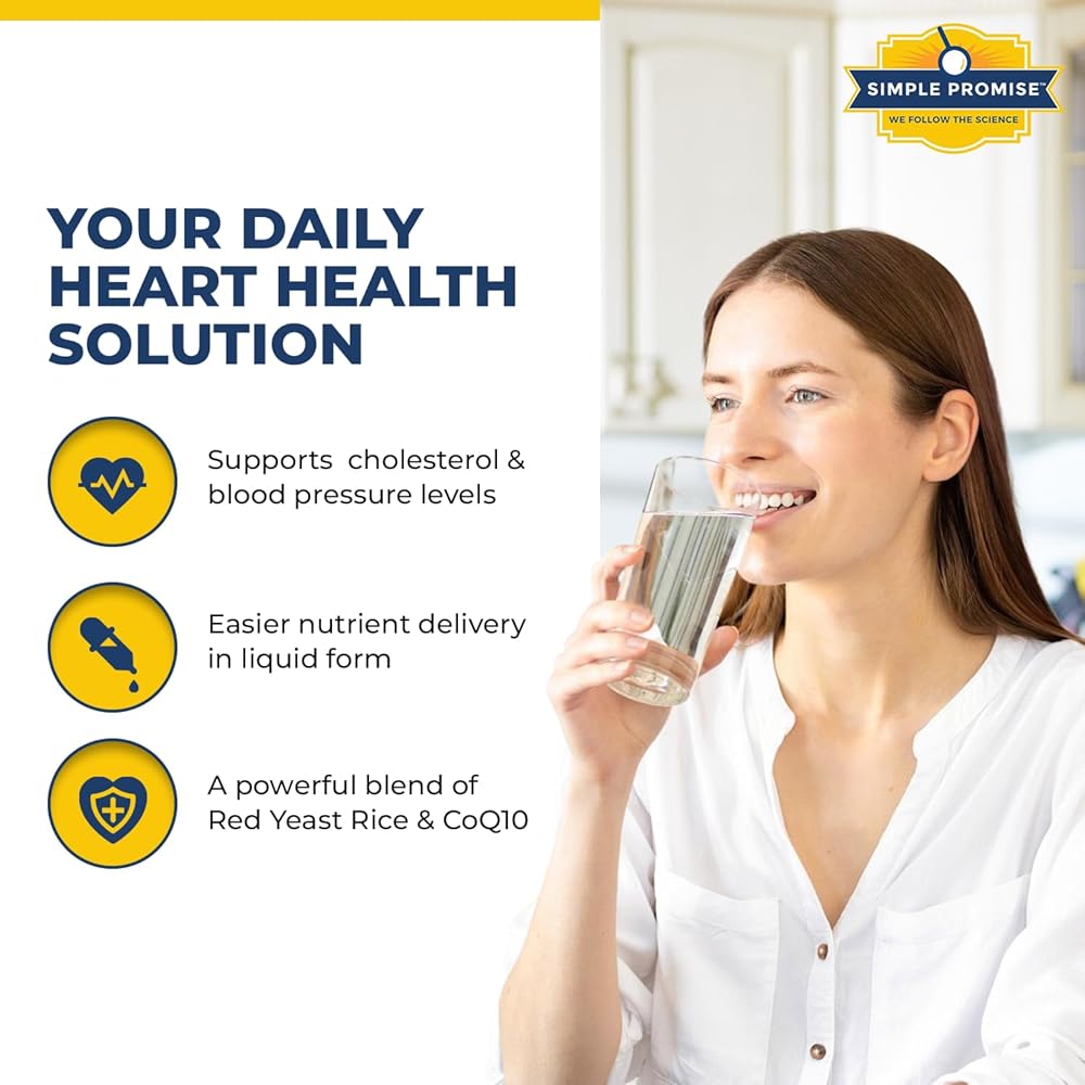 Simple Promise HeartAide - مكمل صحة القلب - أرز الخميرة الحمراء مع CoQ10 (200 مجم و100 مجم) والإينوزيتول - قطرات سائلة لدعم الكوليسترول ودعم القلب والأوعية الدموية - 4 أونصة سائلة، نكهة كريمة البرتقال