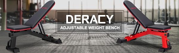 7-POSITION WEIGHT BENCH. DERACY adjustable weight beach has 7 backrest pad positions and 3 front seat positions, fully meet all your workout needs, you can perform a number of upper and lower body exercises by adjusting this weigh bench easily.