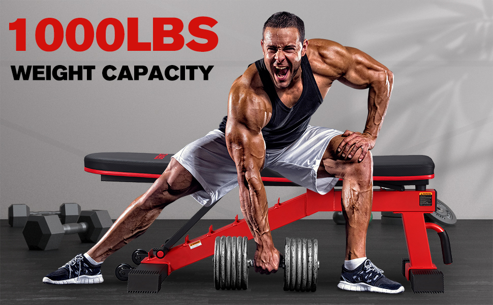 HEAVY-DUTY STEEL CONSTRUCTION. This commercial standard weight bench designed with unique triangle structure and heavy-duty steel, supports 1000 LBS, perfect for all kinds of full body workout training.