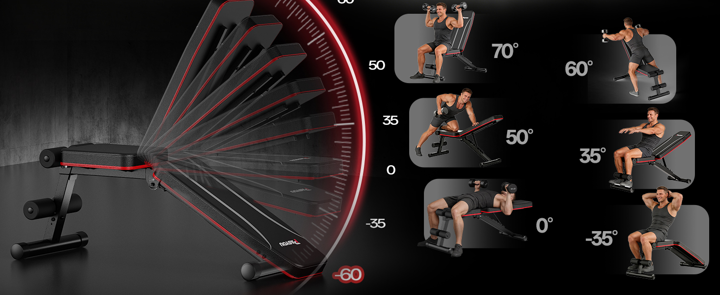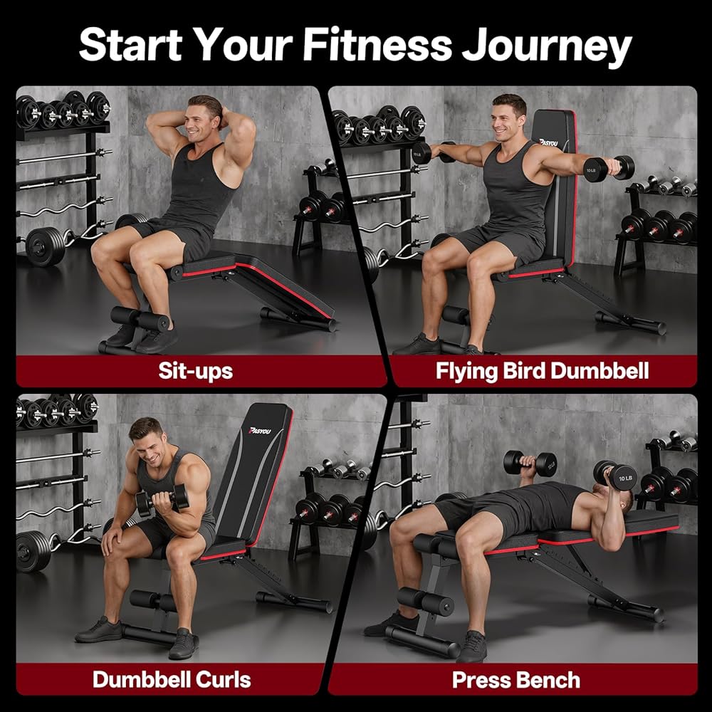 The PASYOU Adjustable Weight Bench is designed to provide a practical, versatile, and space-efficient solution for home fitness training. With a 8-level adjustable backrest ranging from –26.7° decline to 90° upright, this workout bench supports incline, decline, and flat exercises, allowing you to perform bench presses, dumbbell workouts, core training, and full-body strength routines from a single compact bench. Built with a precision-welded steel frame, the bench delivers reliable stability for daily workouts while maintaining a manageable footprint for home use. The thick, multi-layer sports foam padding enhances comfort by reducing pressure during longer training sessions, helping users stay focused on proper movement and form. Designed for apartments and small spaces, this foldable weight bench can be stored quickly under beds, in closets, or beside furniture when not in use. Despite its compact size, it supports a wide range of exercises, including sit-ups, decline ab workouts, chest presses, and upper-body training. Whether you are starting a home gym or upgrading your current setup, the PASYOU workout bench combines adjustability, comfort, and convenience in one practical design. PASYOU provides responsive after-sales support, ensuring a reliable and confident home workout experience.