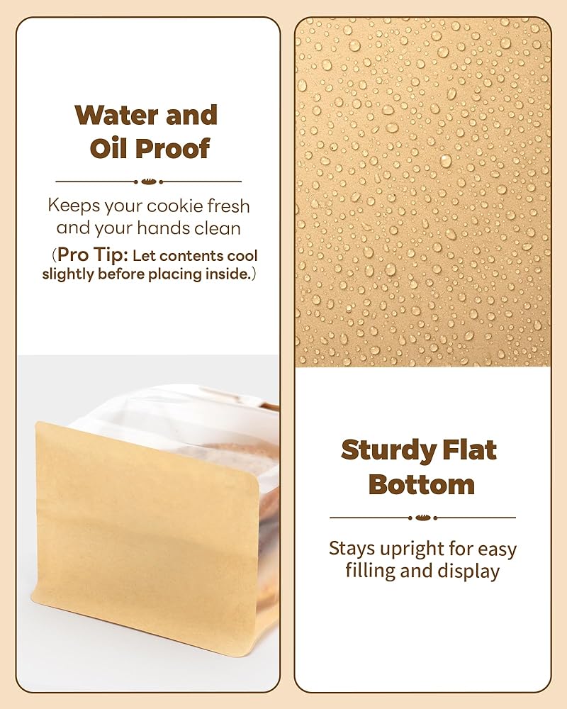 يقف بمفرده: لا مزيد من الانسكابات المنسكبة! تقف أكياس البسكويت الخاصة بنا للتغليف في وضع مستقيم لسهولة التعبئة والتقديم دون فوضى. مثالية لتنظيم مخزن المؤن السريع أو إعداد الحفلات.