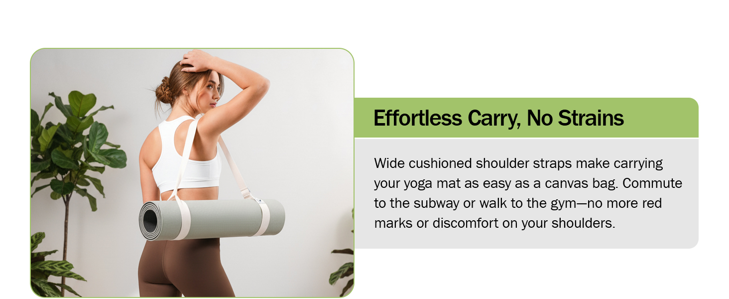 Skin-Friendly Comfort: Made from soft, non-irritating material, the yoga mat holder won't dig into your skin—making it easy to carry your mat or stretch without discomfort.