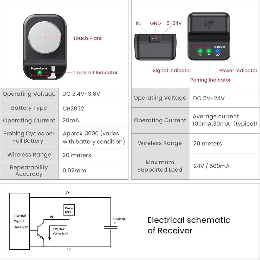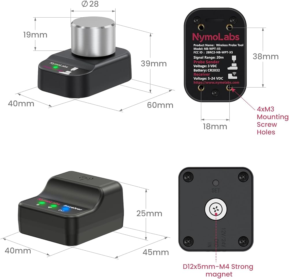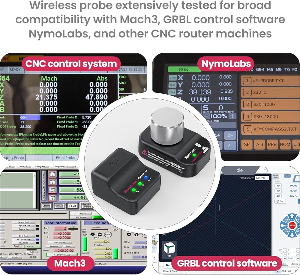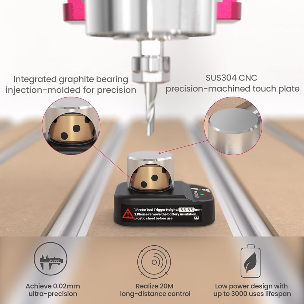 إعداد الأدوات عالي الدقة: تم تصميم NymoLabs Wireless Z Probe لأجهزة التوجيه CNC المكتبية ومجموعة واسعة من آلات CNC، مما يوفر إعداد أداة المحور Z عالي الدقة بدقة تصل إلى 0.02 مم. إنه يعزز كفاءة المعالجة مع ضمان قياسات موثوقة ودقيقة.