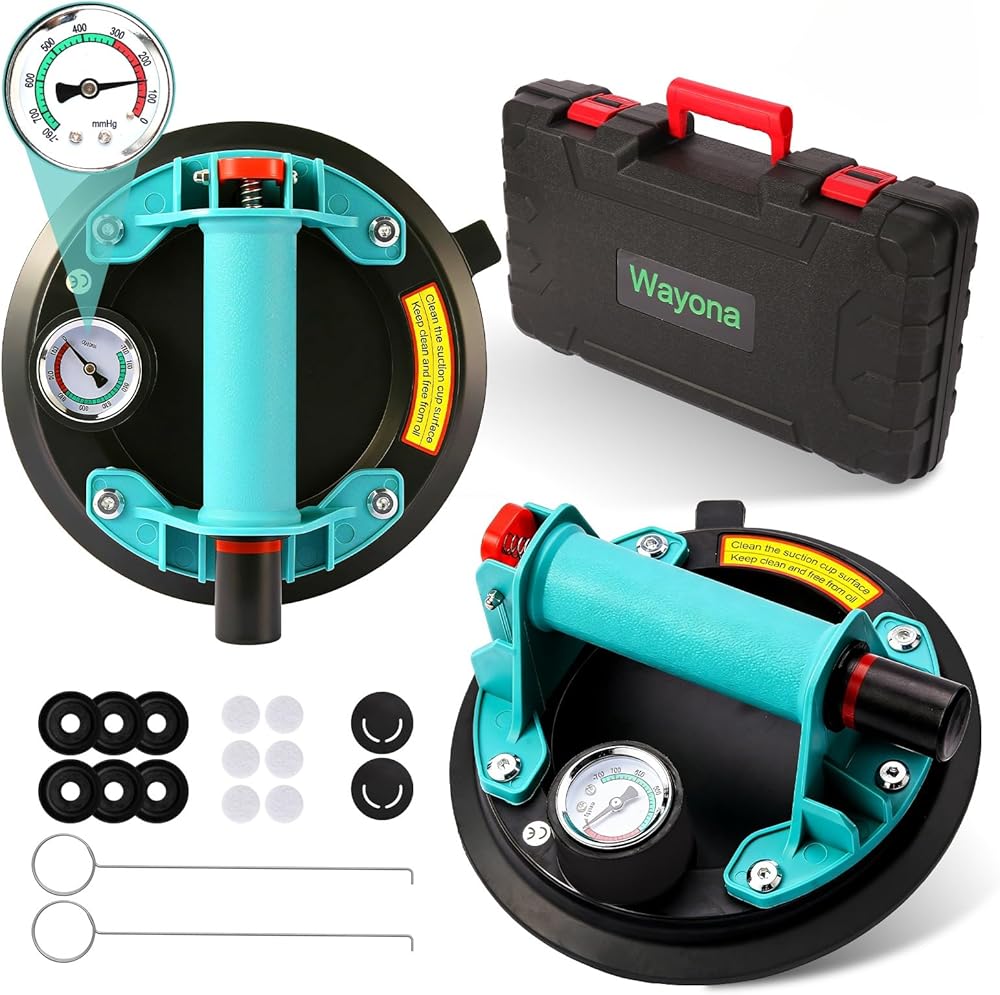 Wayona 2 حزمة من أكواب الشفط شديدة التحمل للنوافذ الزجاجية، أداة يدوية لشفط البلاط مقاس 8 بوصات مع مقياس ضغط جوي، سعة رفع 882 رطلًا للزجاج والسيراميك الكبير، معتمدة من CE