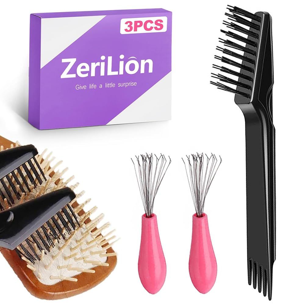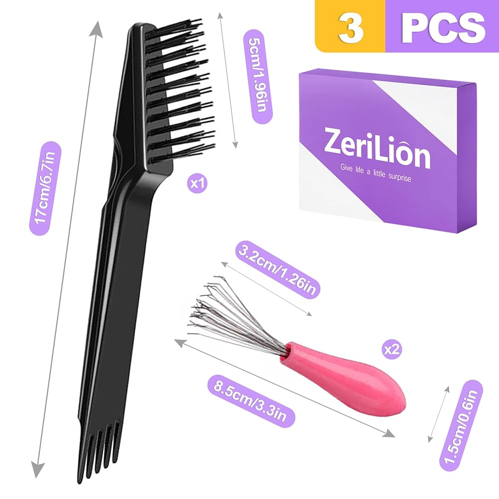 [مجموعة كاملة مكونة من 3 قطع] تتضمن فرشاة تنظيف سوداء برأسين ومشطين تنظيف صغيرين، نظام عملي للصيانة اليومية للفرشاة.