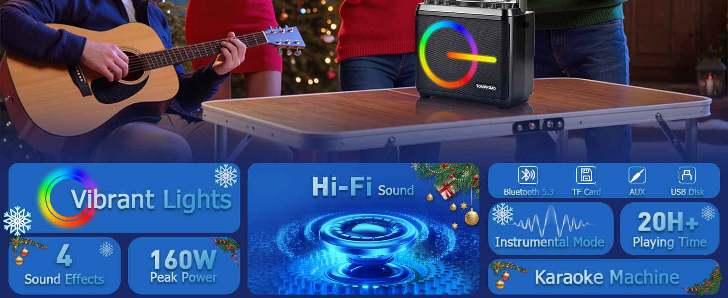 ♫【نظام صوت احترافي، هدية مثالية للعطلات】نظام الصوت الاحترافي هذا هو الهدية المثالية لمحبي الموسيقى وعشاق الحفلات. إنها هدية متعددة الاستخدامات وعملية سيقدرها أي شخص. إنه مثالي لأعياد الميلاد والكريسماس والعطلات الأخرى. يمكنك أيضًا توصيل ميكروفون خارجي عبر مقبس إدخال MIC، مما يسمح باستخدام ميكروفونات متعددة في وقت واحد، مما يجعل حفلتك أكثر حيوية.