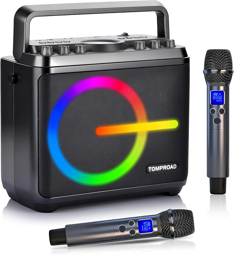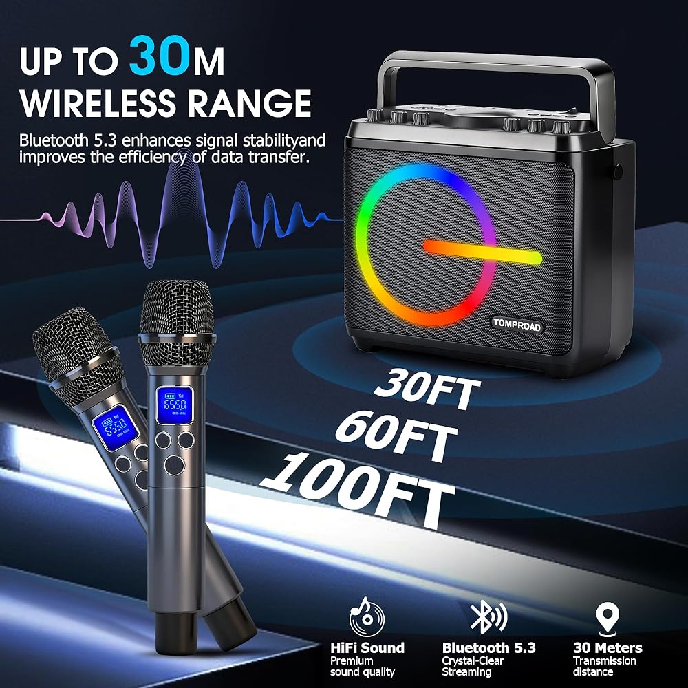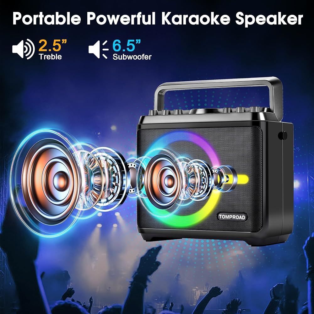 ♫【تصميم محمول وآلة كاريوكي】يتميز نظام الكاريوكي المنزلي هذا بتصميم مدمج ومحمول، مما يجعل من السهل حمله. على الرغم من حجمه الصغير، فهو قوي ومناسب للأنشطة الخارجية والتجمعات والحفلات. مجهزة بميكروفونين لاسلكيين، يمكن أن تكون مثالية لغناء الكاريوكي المنفرد، أو الحفلات المنزلية، أو الثنائيات، أو الحفلات الجماعية، أو الفصول الدراسية، أو صالة الألعاب الرياضية. يمكنك استخدامه في أي وقت وفي أي مكان، مما يجعله مثاليًا للحفلات الخاصة وعروض الشوارع.
