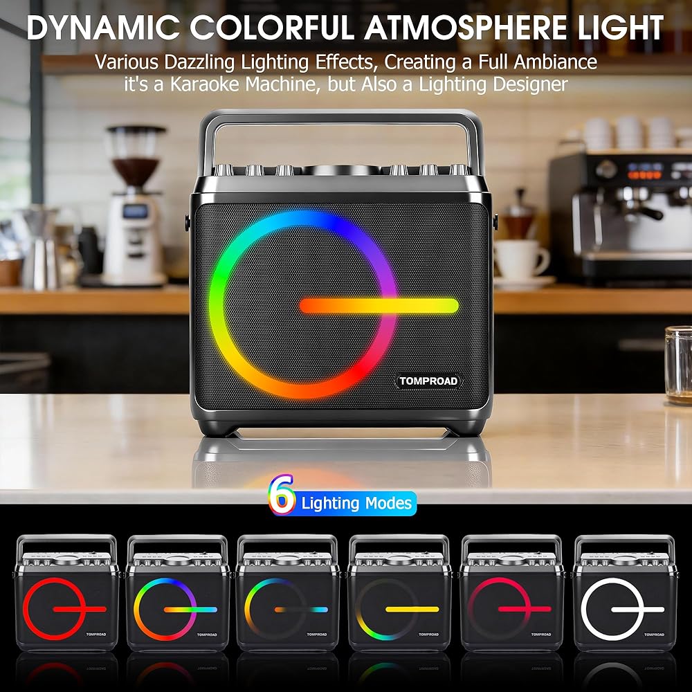 ♫ 【مكبر صوت بلوتوث مع أضواء ديسكو رائعة】تم تصميم نظام الكاريوكي A55 PA مع أوضاع إضاءة ديناميكية متعددة لإضاءة كل ركن من أركان مساحة الحفلة، ويمكن لمصابيح ديسكو LED الملونة تغيير تأثير الإضاءة وفقًا لإيقاع الموسيقى، والتي يمكن أن تمنح الألوان النابضة بالحياة حفلة منزلك أو الشاطئ أو التخييم أو السفر في الهواء الطلق جوًا مثيرًا. يمكنك تشغيل وإيقاف مصابيح LED بسهولة باستخدام زر واحد.