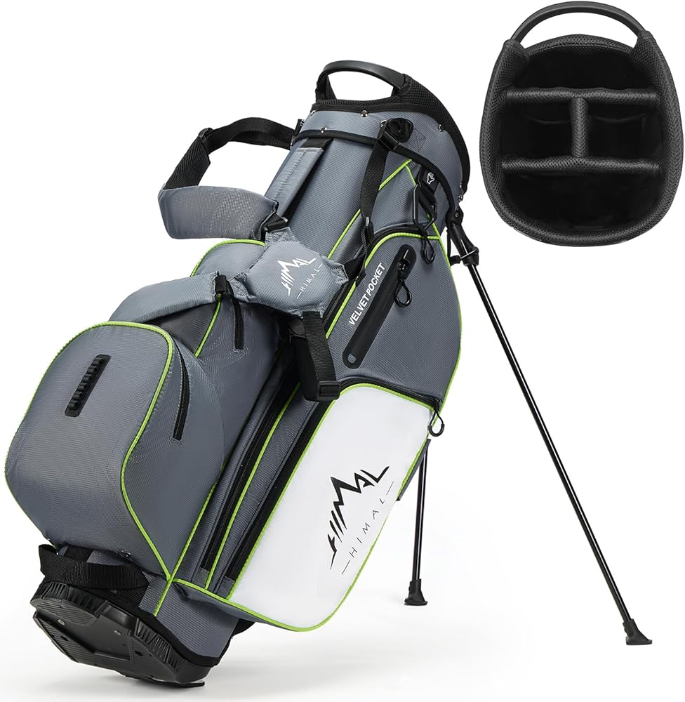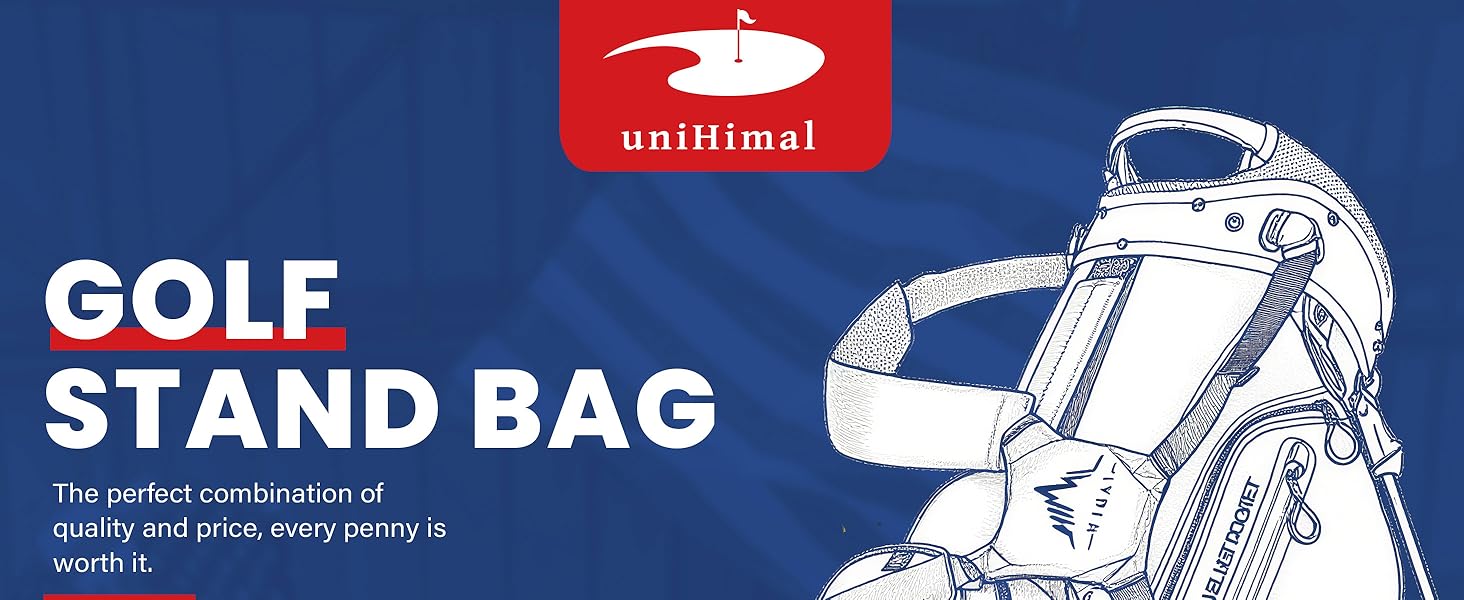 Experience the perfect blend of mobility and organization with the UNIHIMAL 4-Way Stand Bag. Weighing only 5.4 lbs, its compact design makes it an effortless carry, while the clever 4-way top keeps your clubs protected and easily accessible. The automatic retractable stand ensures a stable setup anywhere on the course. Built for convenience, it features 9 functional pockets—including a valuables sleeve, insulated cooler pocket, and ample storage for all your gear—plus integrated tee slot, towel ring, and umbrella holder. A matching rain cover is included for all-weather readiness.