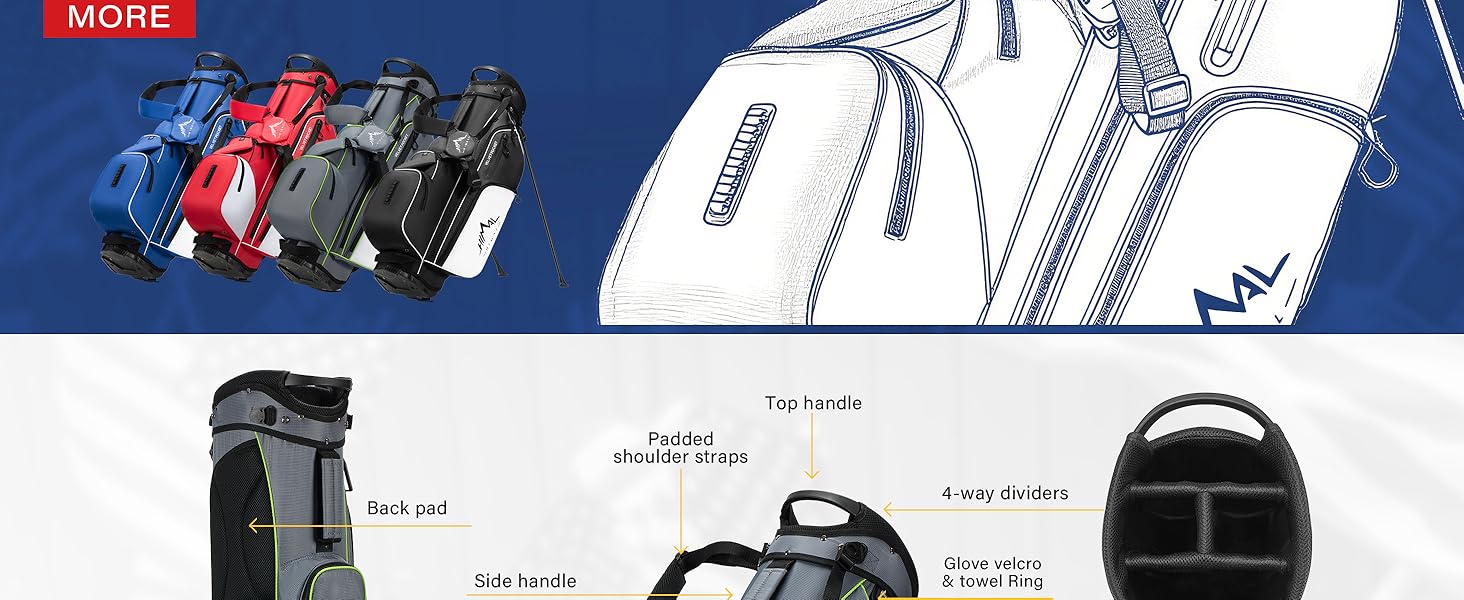 4-Way Club Protection --Full-length dividers reduce club friction and scratches, makes it easy to take out clubs without club tangle, fits 4-8 clubs