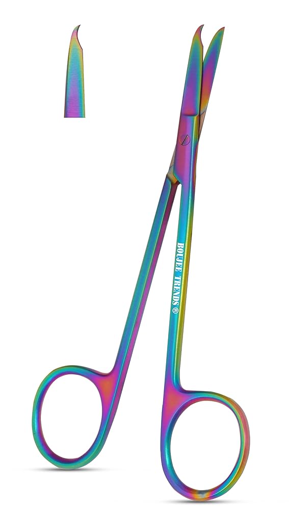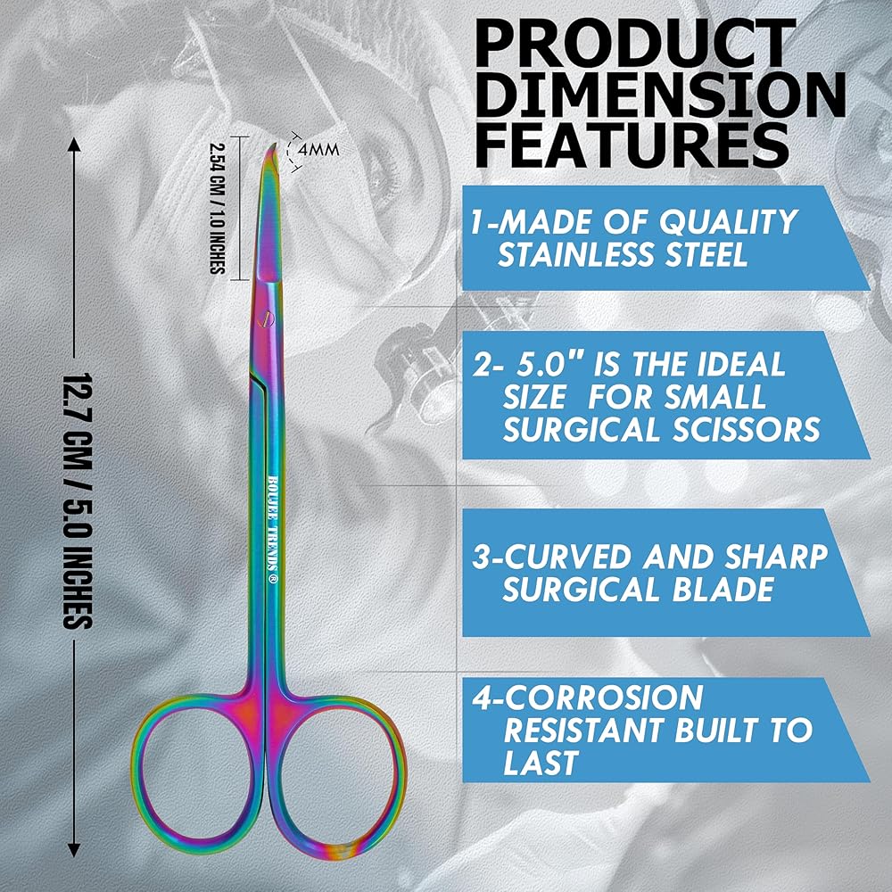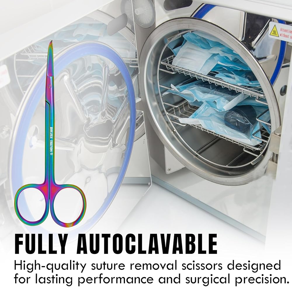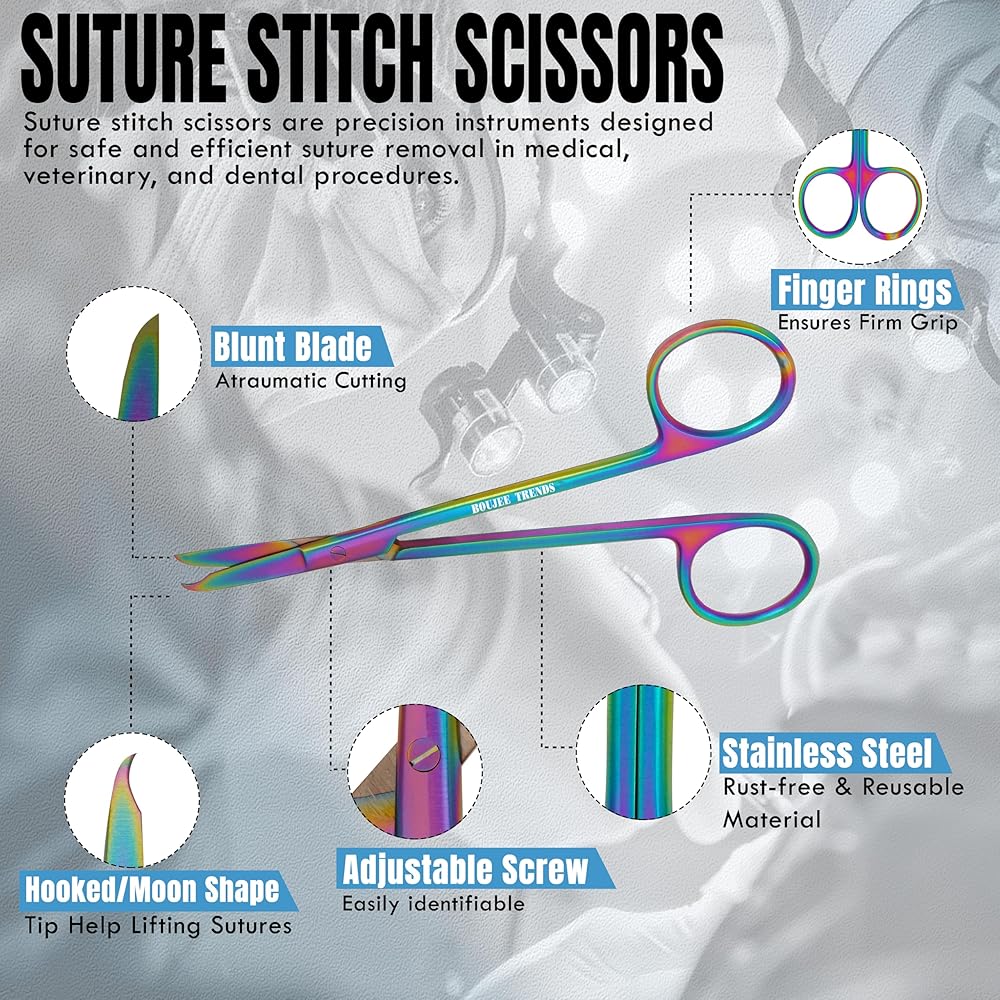 Suture Stitch Scissors with Multicolor/Rainbow Titanium Coating - Premium Quality Instrument- Delicate Hook - Perfect for Suture Removal, First Aid, EMS Training and More (4.5 in. - Straight)