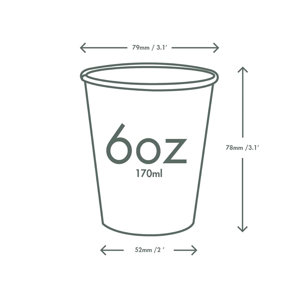 • 6oz paper cups measure 3.1" (Top diameter) x 2" ( bottom diameter) x 3.7" (Height)