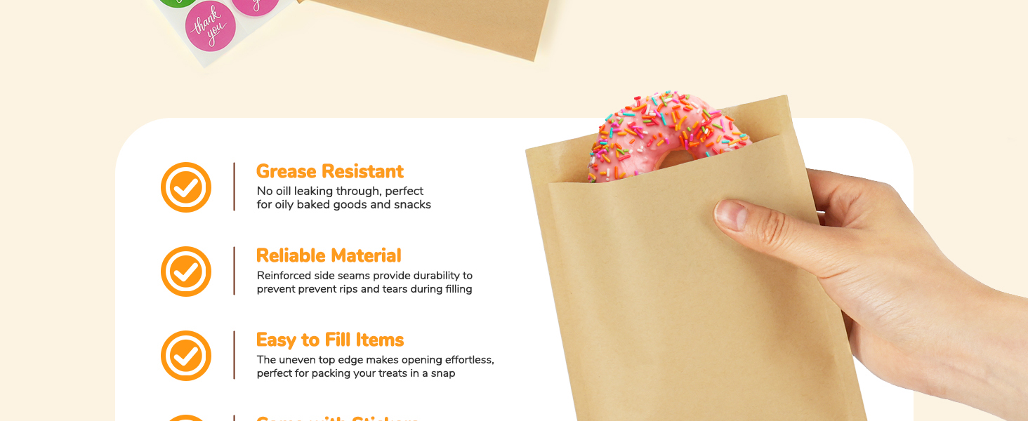 • قيمة رائعة مع الملصقات المتضمنة: مجموعة من 200 حقيبة مع 200 ملصق "شكرًا لك" مطابقًا. عملية وفعالة من حيث التكلفة وجاهزة لمشاركة لطفك مع كل هدية محلية الصنع!
