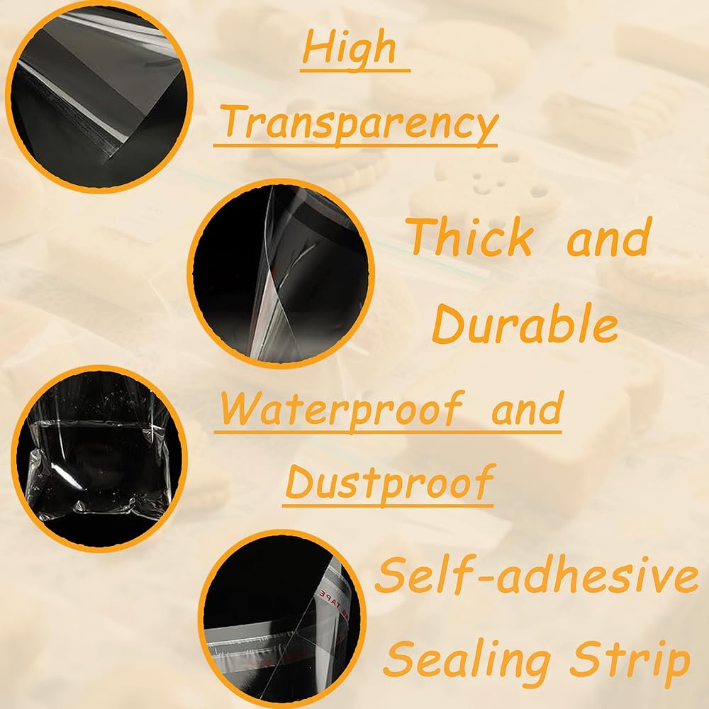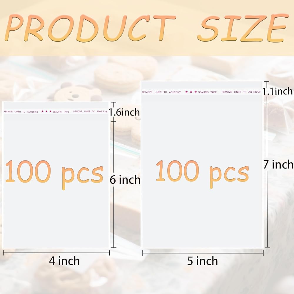 200 قطعة من أكياس البسكويت، أكياس سيلوفان شفافة ذاتية الغلق مقاس 4x6، 5x7 بوصة، لتغليف البسكويت والحلوى والهدايا والمنتجات