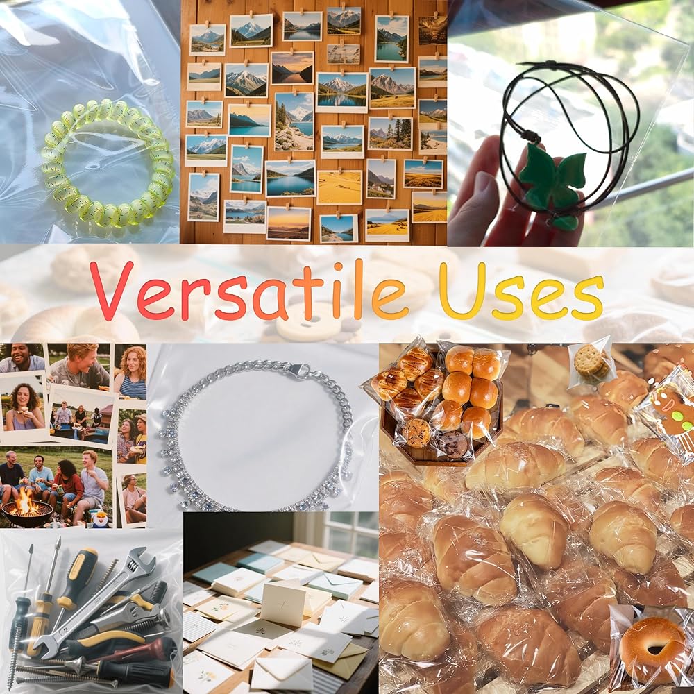 • 【عالية الجودة ومتينة】شفافة للغاية وواضحة، ومختومة ومقاومة للتمزق، وسميكة وقوية. أكياس السيلوفان الشفافة بالكامل تجعل الأشياء تبدو جذابة. الشريط اللاصق القابل للإغلاق يمنع الرطوبة ويحجب الغبار ويحافظ على الأشياء طازجة. المادة السميكة أكثر متانة. تلبي الاحتياجات المتنوعة لكل من الشركات والأفراد.