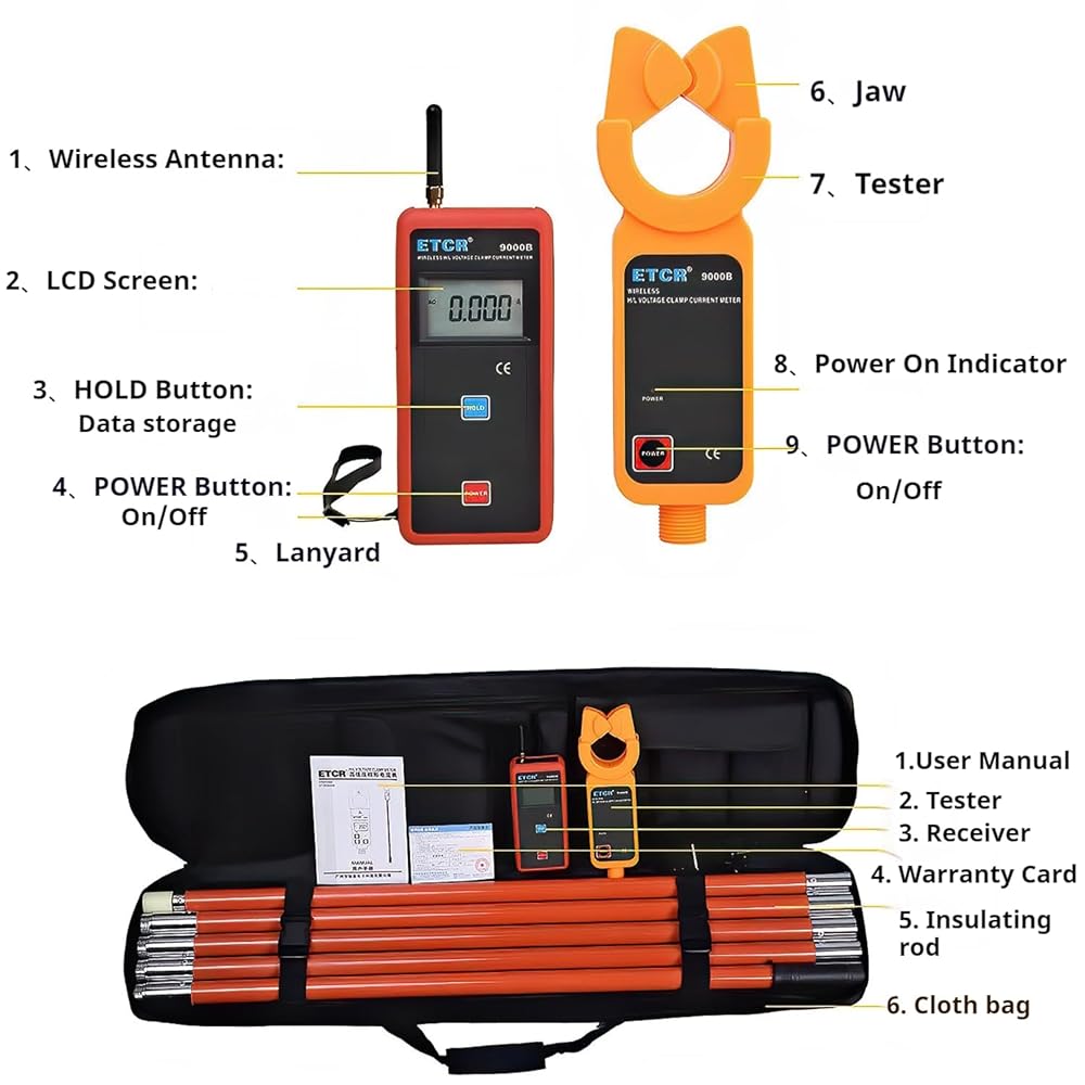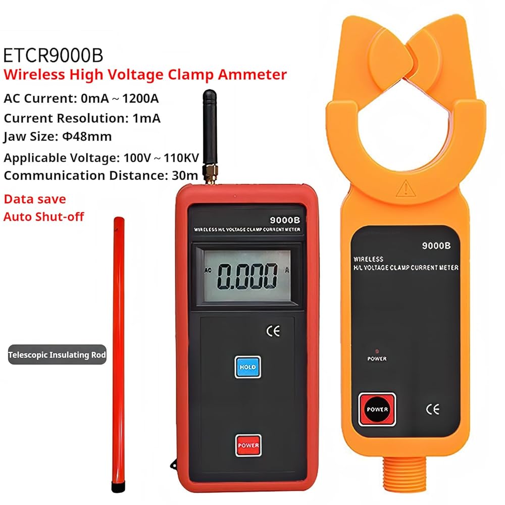 9000B high and low voltage clamp ammeter, suitable for high and low voltage leakage current and current measurement below 60kV, range: 0.00mA~1200A, jaw size is Φ48mm