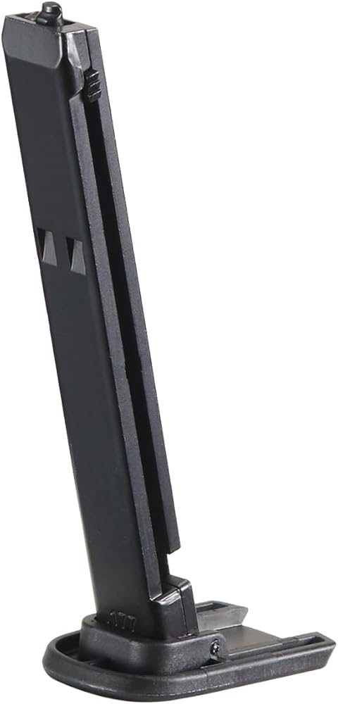 - يستخدم خراطيش ثاني أكسيد الكربون القياسية سعة 12 جم والمتوفرة بسهولة في معظم متاجر السلع الرياضية. (غير متضمن) BB فولاذي مستدير مقاس 4.5 مم فقط