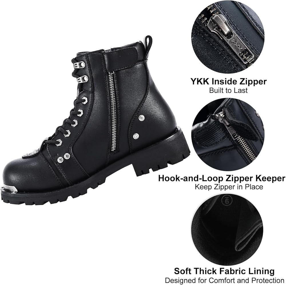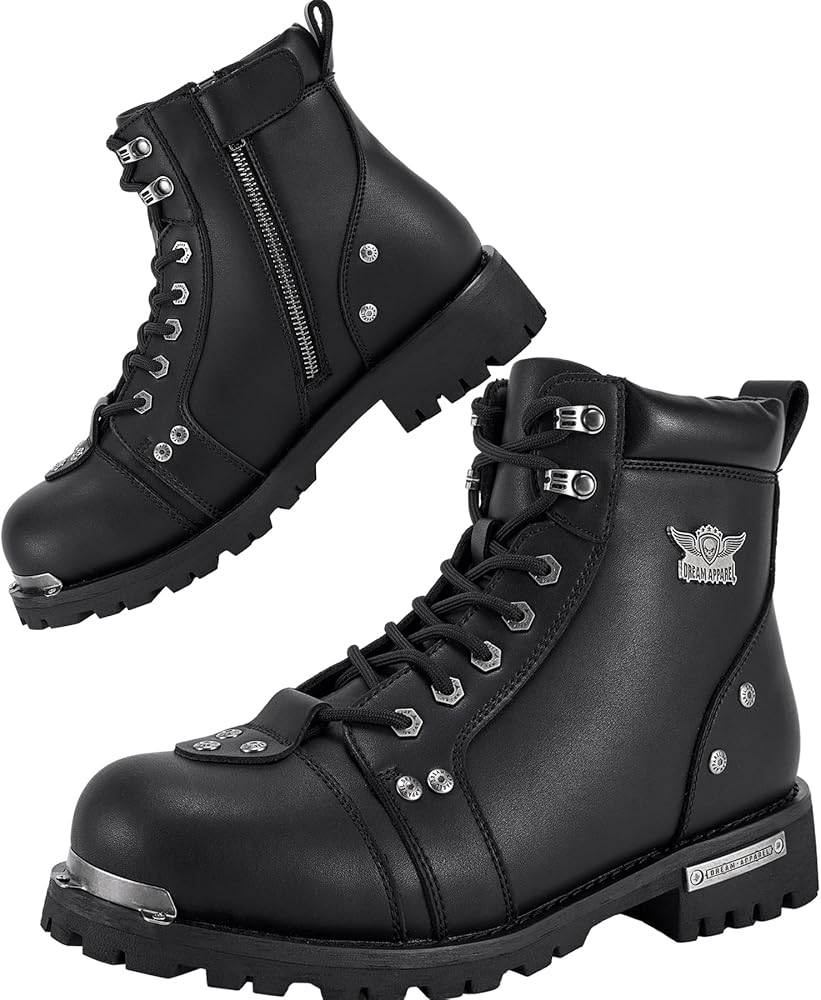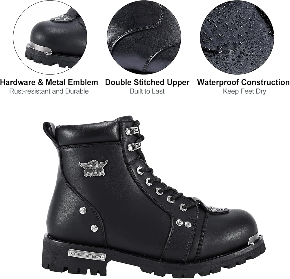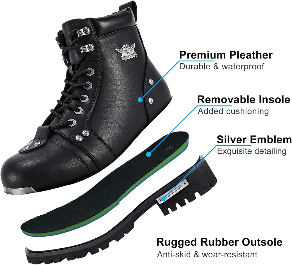 أحذية رجالي للدراجات النارية لركوب الدراجات النارية مع سحاب جانبي، أحذية راكبي الدراجات النارية من الجلد الصناعي الأسود المقاوم للماء، أحذية للكاحل، أحذية قتالية عسكرية بأربطة بكعب منخفض