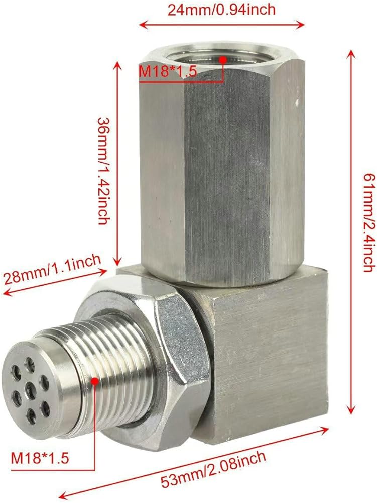 This stainless steel 90-degree angle adapter fitting is an essential component for hydraulic and pneumatic systems requiring directional flow changes in tight spaces. Featuring M18x1.5 thread connections, this welded tube fitting provides a reliable right-angle solution for connecting hoses, pipes, and tubing. The precision-machined stainless steel construction ensures durability and resistance to corrosion, making it suitable for demanding industrial applications. With an overall height of 2.4 inches and a compact footprint measuring 2.08 inches by 1.1 inches, this adapter fitting efficiently redirects flow while maintaining system integrity. The threaded design allows for secure installation and easy maintenance. Perfect for applications in manufacturing, automotive, marine, and industrial settings where space constraints require angled connections without compromising flow performance.