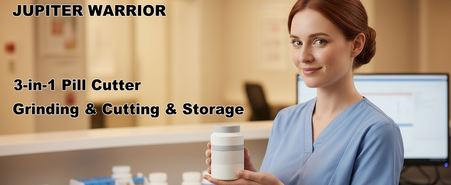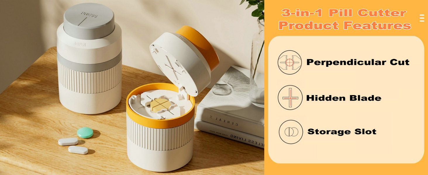 【طحن وتخزين مريح】تحتوي مطحنة حبوب الدواء المبتكرة هذه على صندوق تخزين مدمج لحبوبك المقسمة أو الكاملة، مما يزيل متاعب حمل حاويات حبوب الدواء الإضافية. تعمل ميزة الطحن السفلي على تحويل الحبوب بسرعة إلى مسحوق مع دوران سريع لتسهيل الاستهلاك