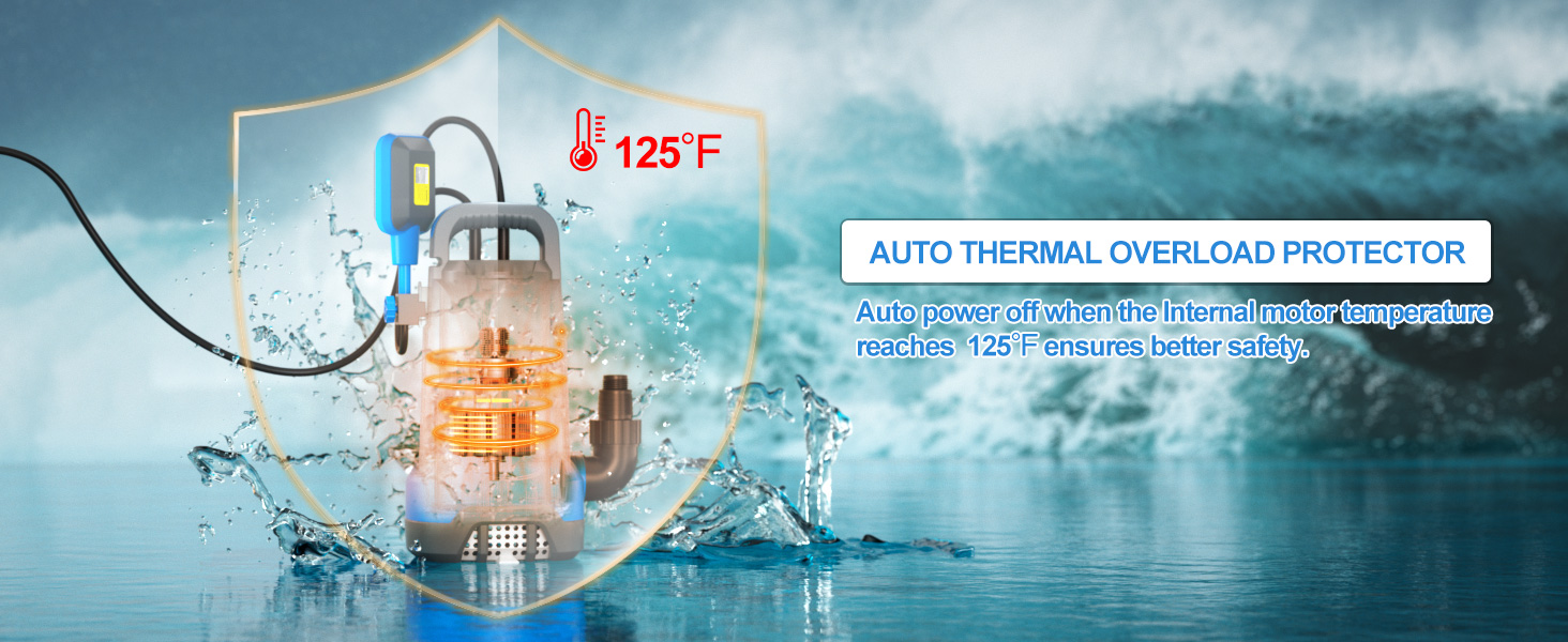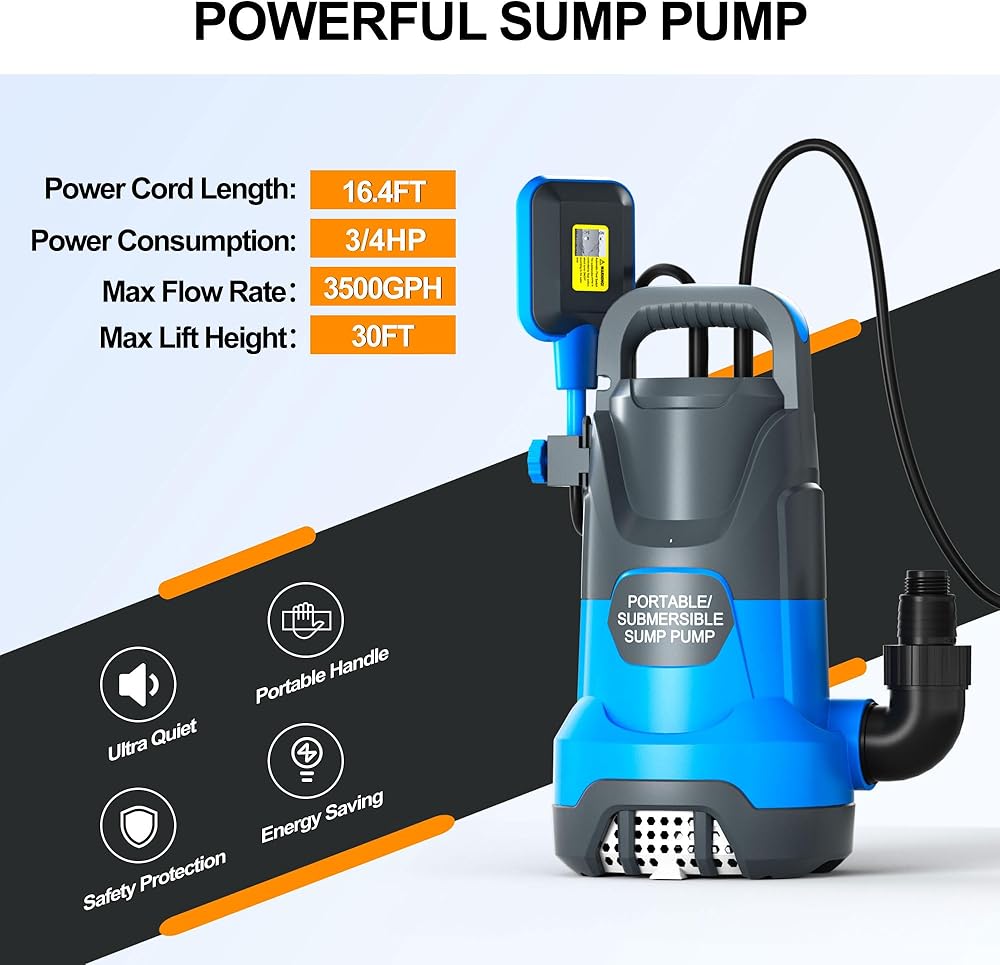 • إزالة الماء بكفاءة: توفر مضخة المياه الغاطسة بمحرك 3/4 حصان تدفقًا عاليًا وتصريفًا سريعًا. تصريف المياه حتى 3500 جالون في الساعة على ارتفاع 5 أقدام. تعمل مضخة نقل المياه هذه بسلاسة دون إهدار الكثير من الكهرباء. يساعدك على القيام بأي مهمة تصريف بكل سهولة