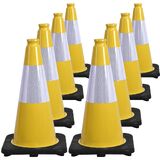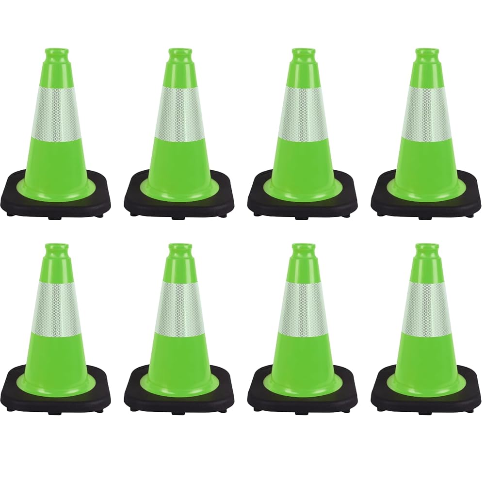 مخاريط مرورية عاكسة عالية الوضوح: يتميز كل مخروط طريق بشريطين عاكسين عريضين يوفران رؤية 360 درجة في ظروف الإضاءة المنخفضة والليل. تعمل مخاريط المرور ذات الألوان الزاهية على تحسين الوعي والسلامة في مواقف السيارات والممرات ومناطق البناء